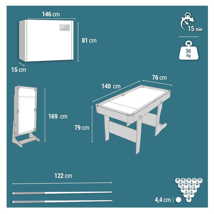 - Official Dimensions: Maintains dimensions equivalent to an official pool table (Length = 2 x Width)