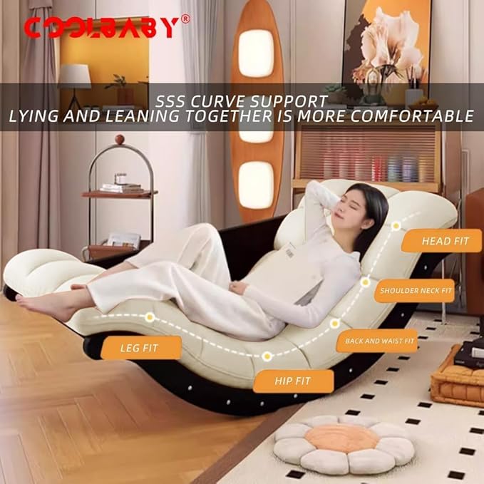 - COOLBABY Outdoor Rocking Chair, Moon Shaped Rocking Chair, Indoor Sofa Chair for Bedroom, Living Room, Porch, Garden, Lawn - Beige