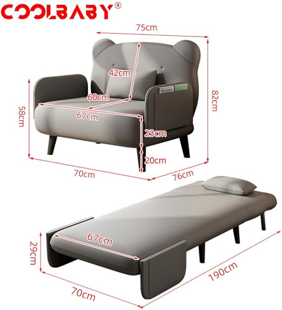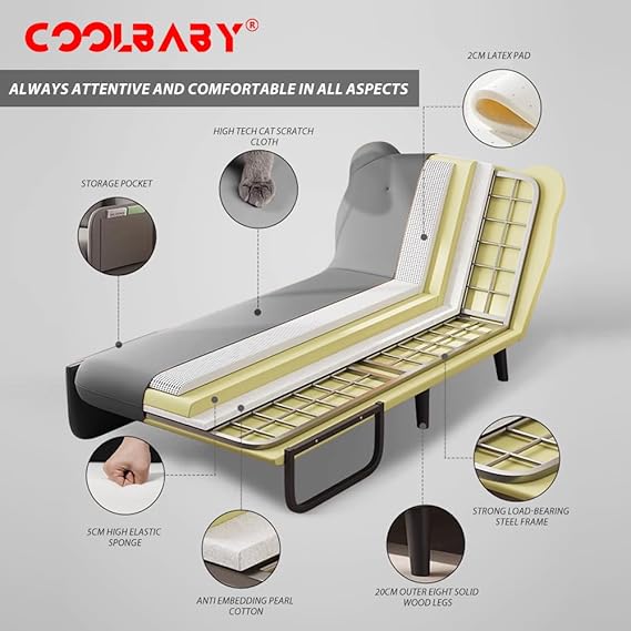 - COOLBABY Sofa Bed Tri-fold Sofa Bed with Adjustable Backrest and Pillows, Lounge Chair for Outdoor, Indoor, Home and Office, Comfortable Sleeper (Gray)