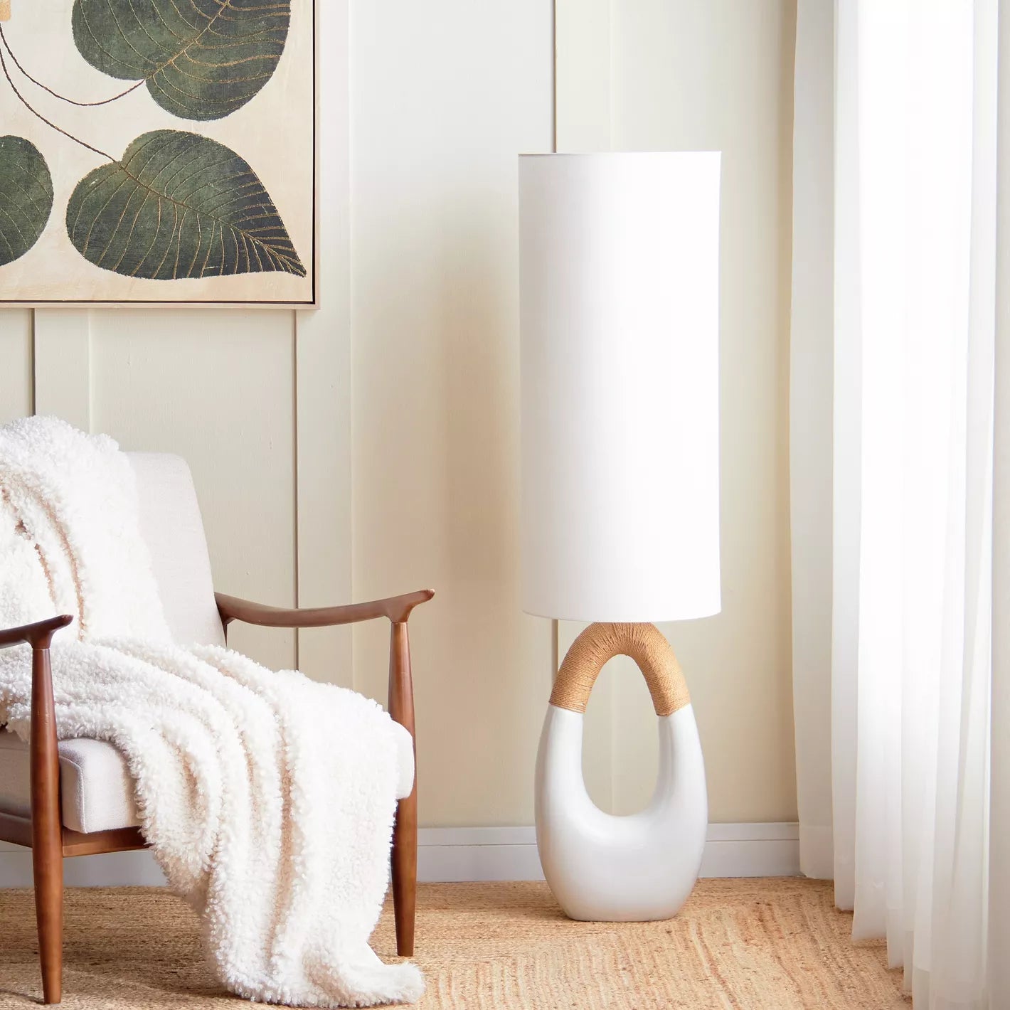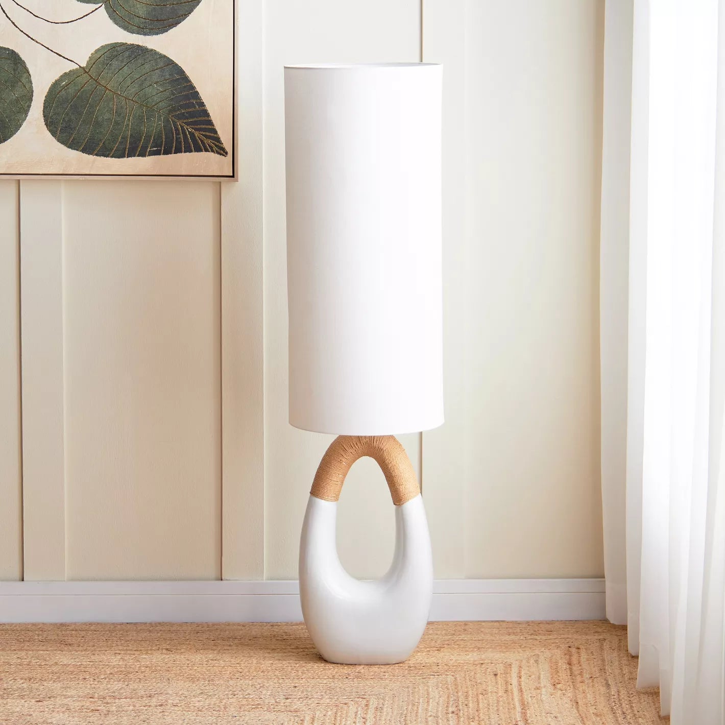 - Design: Features a unique ceramic base and a light-toned fabric shade, offering a sophisticated and modern look.