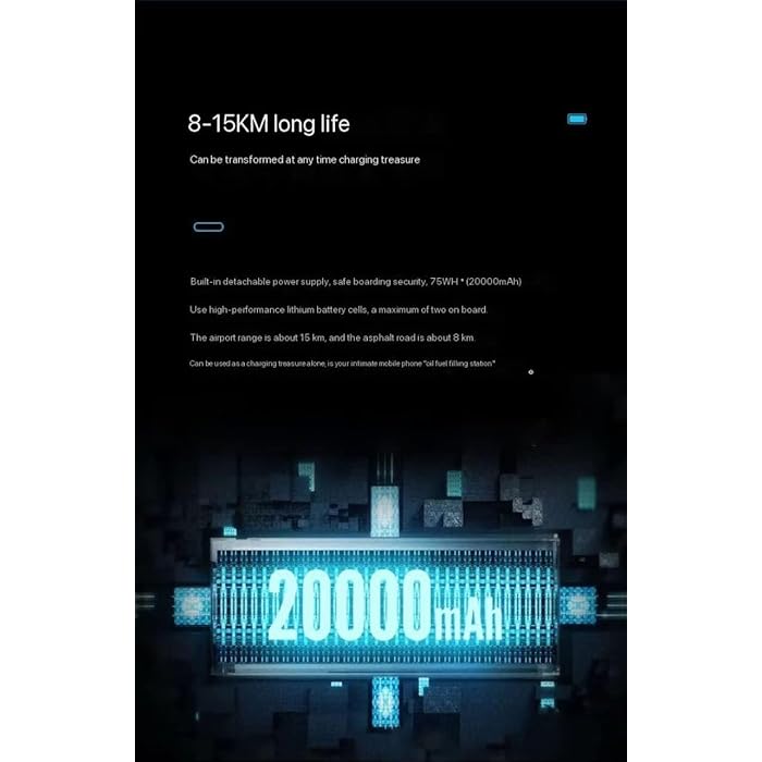 - Long Battery Life: Offers up to 13 km of battery life on airport floors and 7 km on asphalt roads, perfect for navigating long distances during travel.