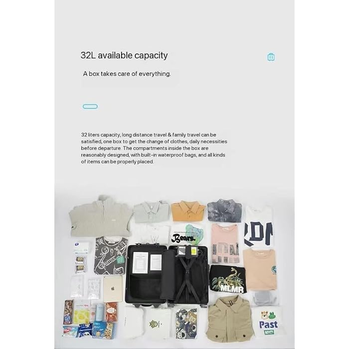 - 32L Storage Capacity: Spacious 32L interior, ideal for long-distance travel, family trips, and handling clothing and daily necessities.