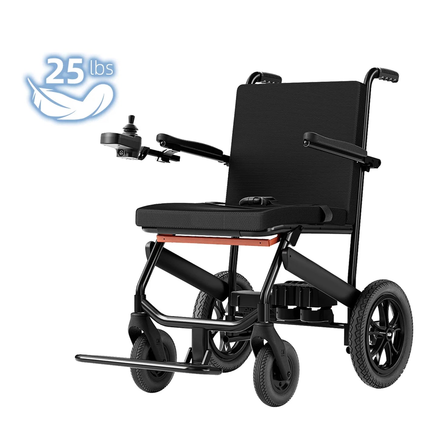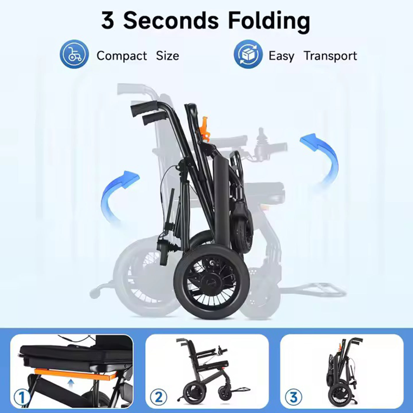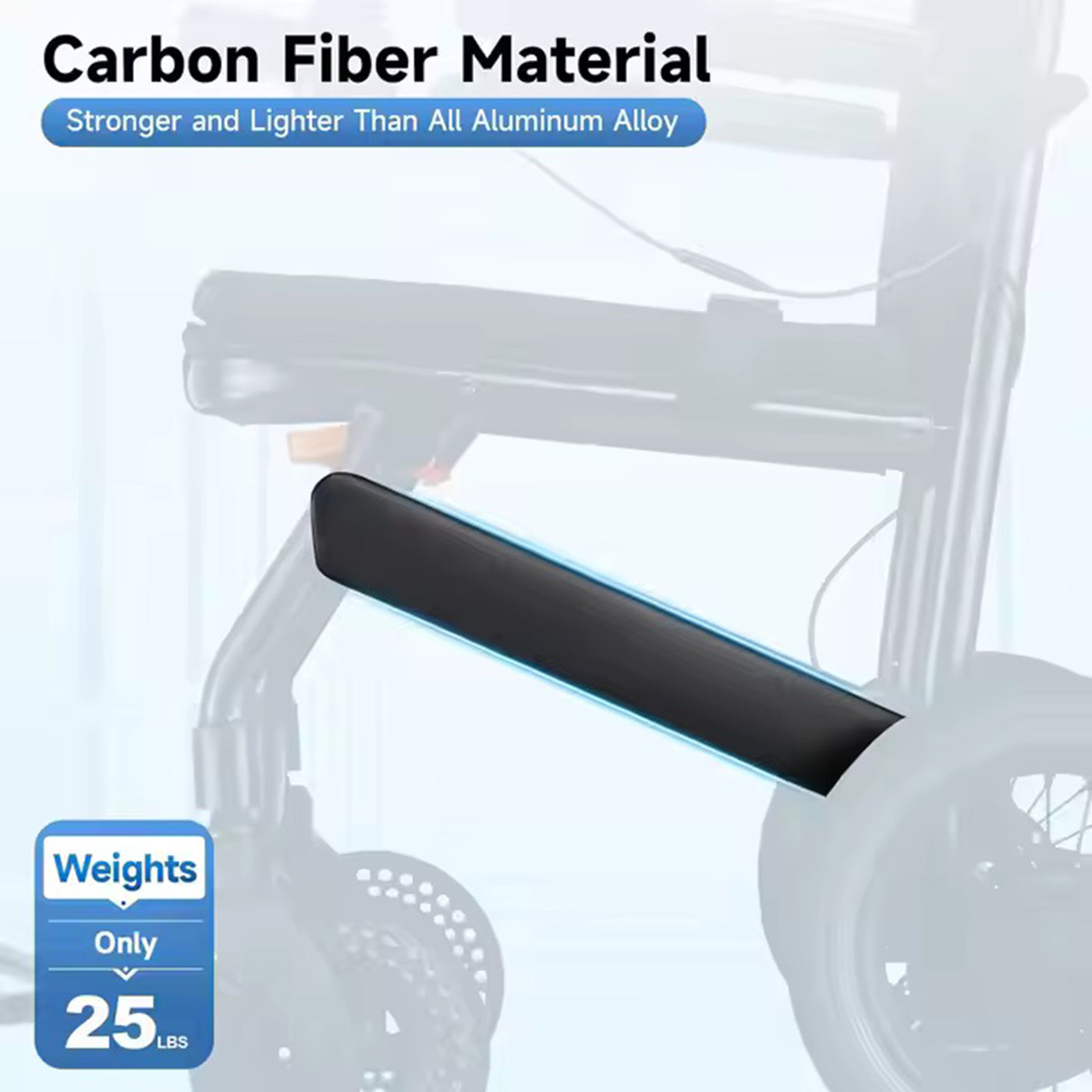 ✔️ [Lightweight Carbon Fiber and Foldable]: This electric wheelchair weighs only 25.35 lbs (without battery), 28.66 lbs (with batteries), making it highly portable and easy to foldable. Folds compactly for convenient storage and transportation, approved for airline travel.