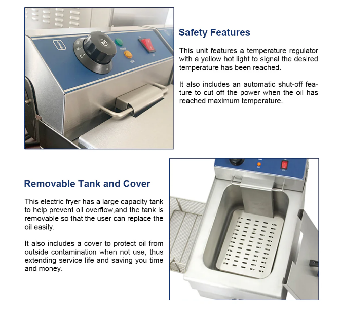 Heating Lights: Indicator lights signal when the fryer is heating and when it has reached the desired temperature.