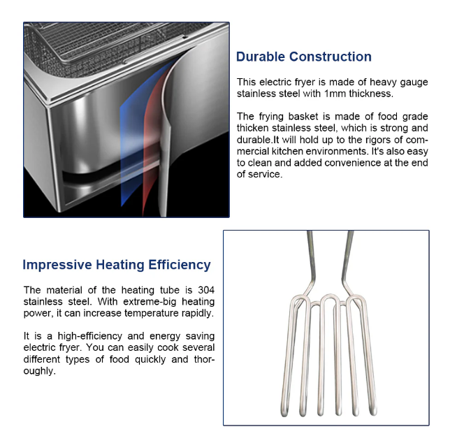 Power: 3300 watts, providing fast and efficient heating for high-volume frying.