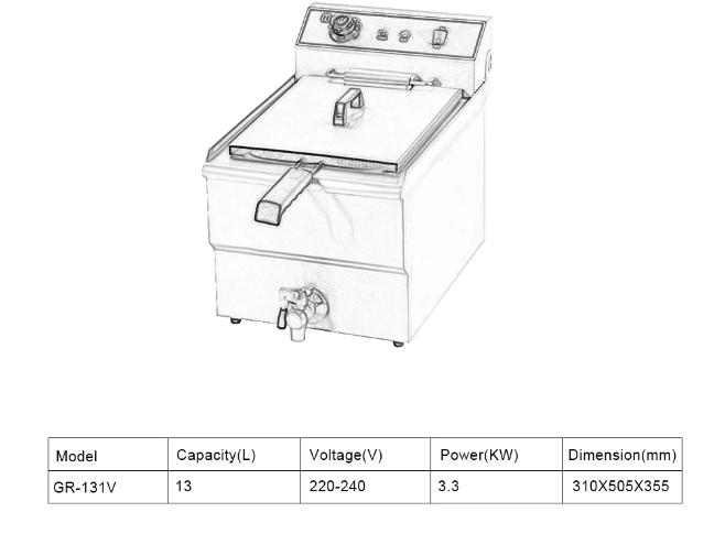 Drain Tap: Equipped with a front-mounted drain valve for easy and efficient oil release, simplifying cleaning and maintenance.
