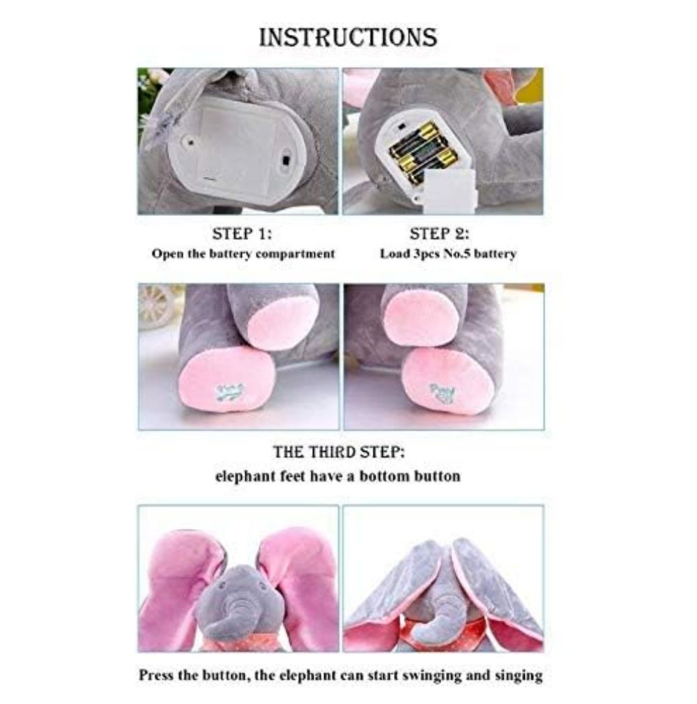 - Adorable Entertainment: Grey-pink elephant toy with singing feature, activated by easy button-push for delightful playtime.