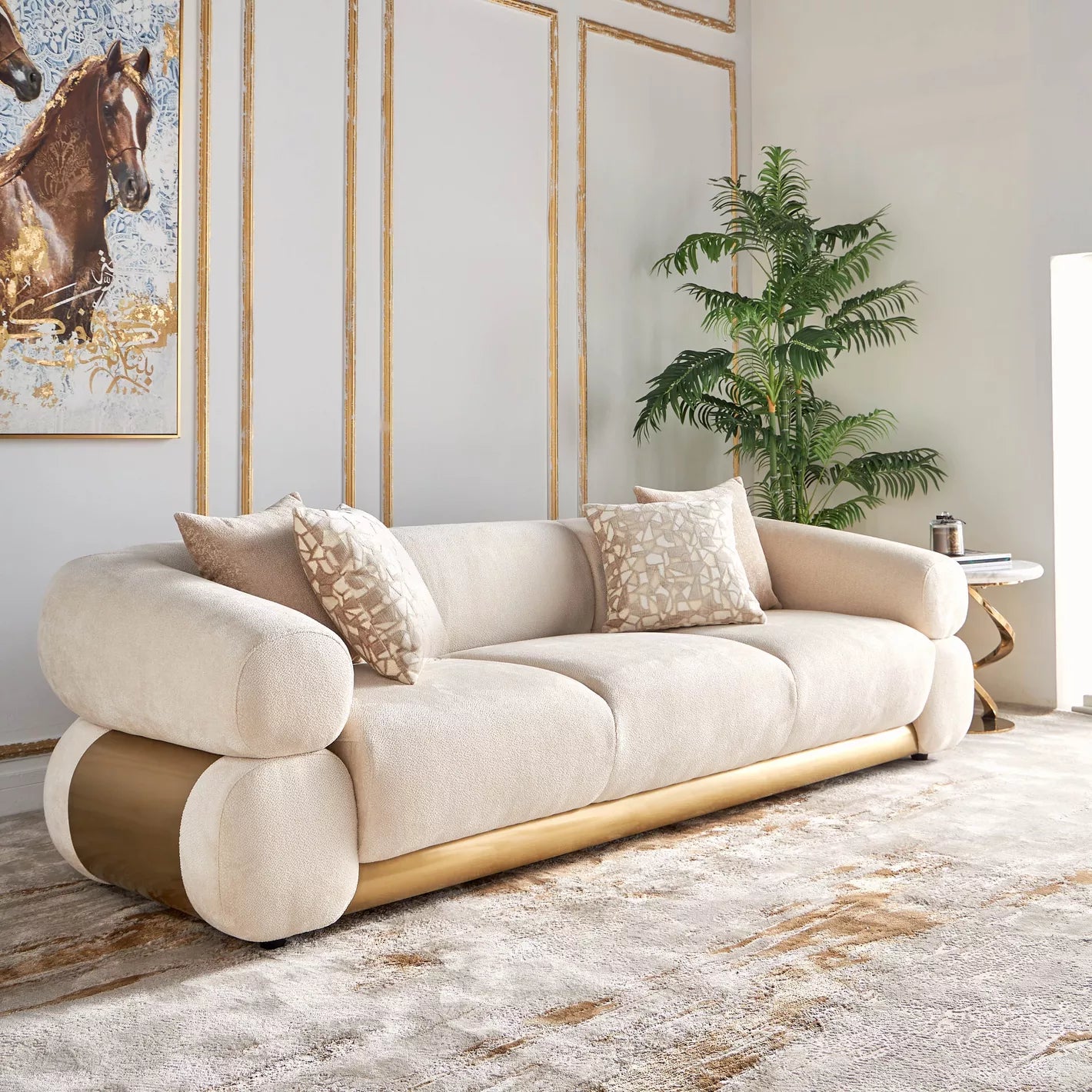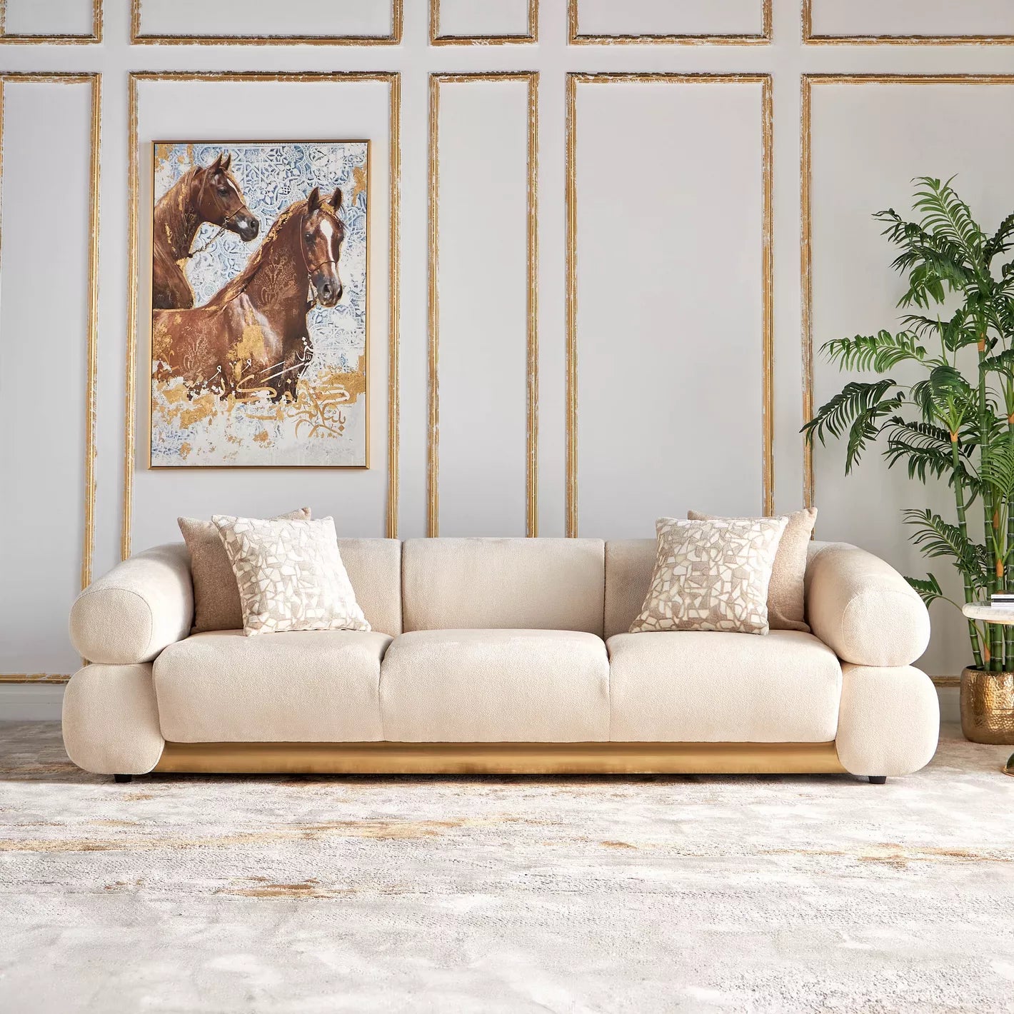 Sophisticated Modern 3-Seater Velvet Sofa 94 x 249 x 64 CM - Beige