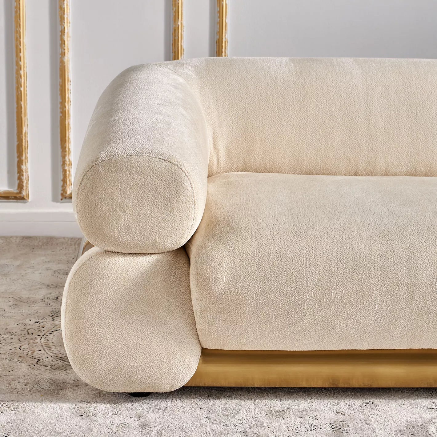 Sophisticated Modern 3-Seater Velvet Sofa 94 x 249 x 64 CM - Beige - COOLBABY