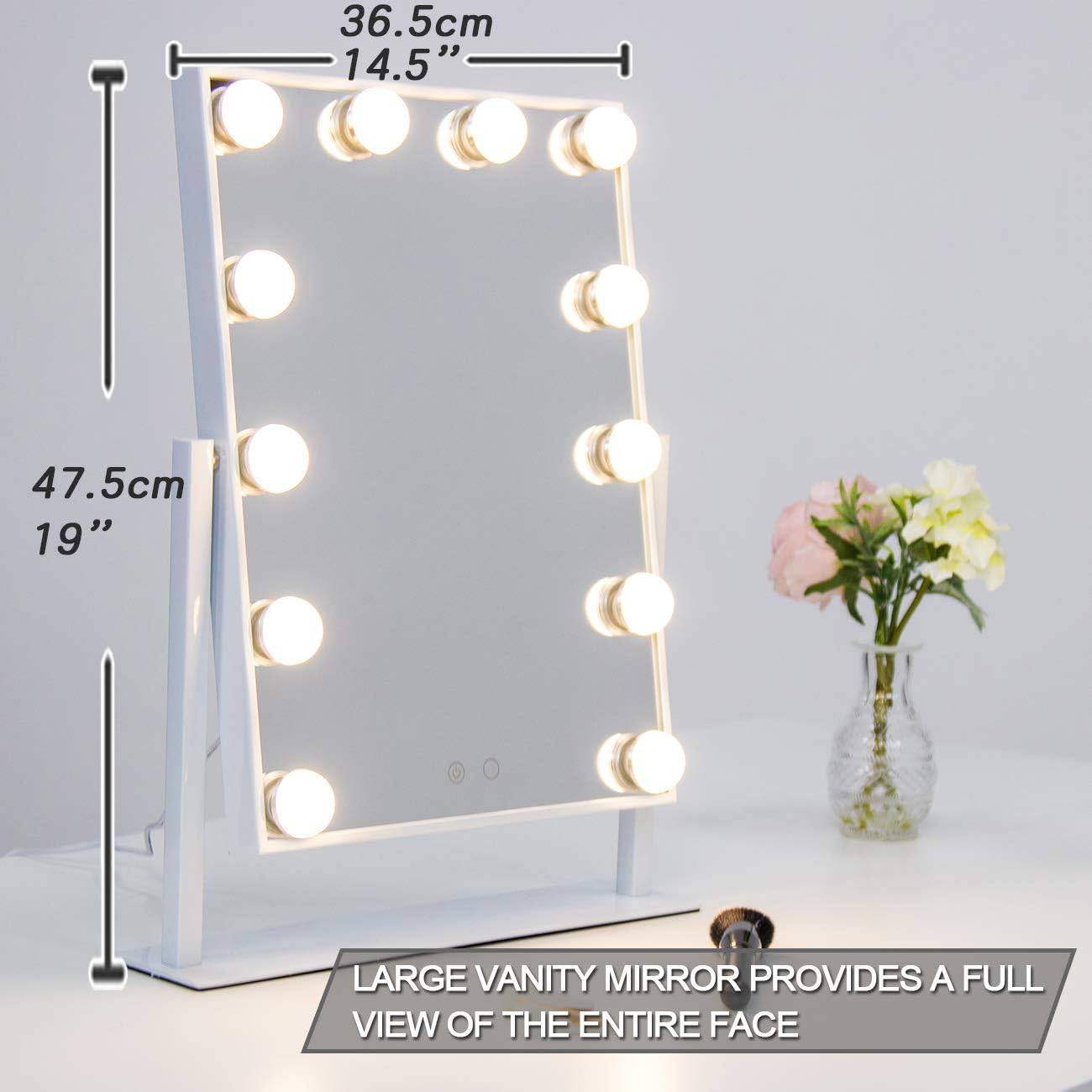 COOLBABY MIRR012 Large Makeup Mirror with Lighting, Illuminated Standing Mirror for Dressing Table with Dimmable Lamps, White Hollywood Mirror with Light - COOL BABY