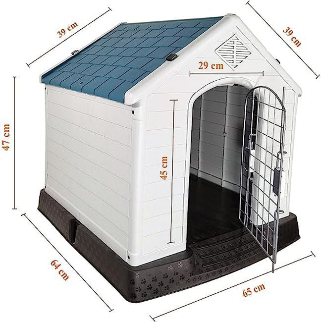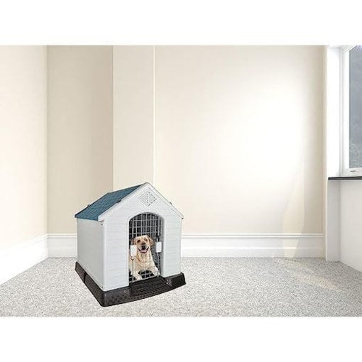 Majibao Portable Hard PP Plastic Dog House, Grey, Blue & Green Mix, 70cm Height