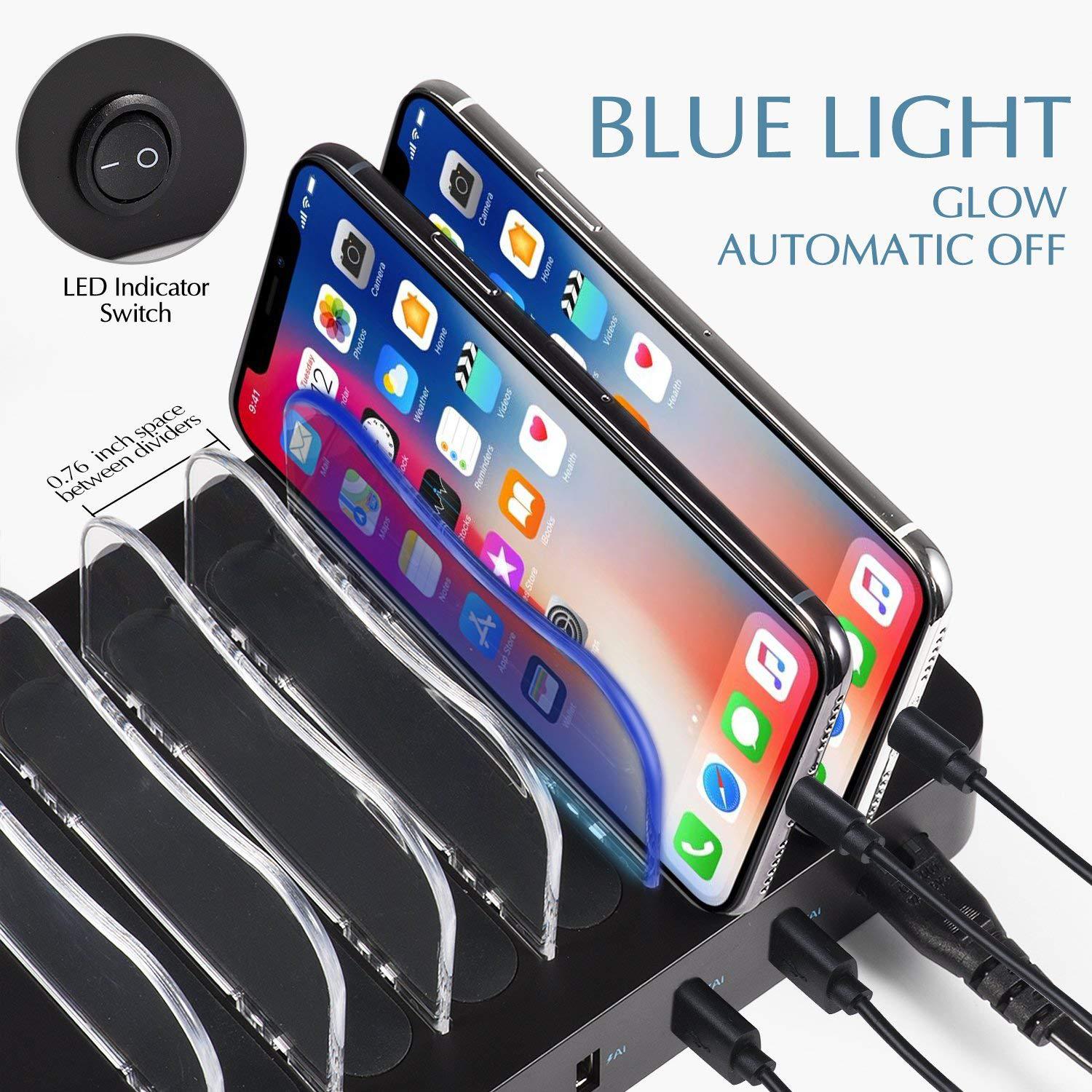 - Multi-Device Charging: Charge up to 6 devices simultaneously with the convenience of one station.