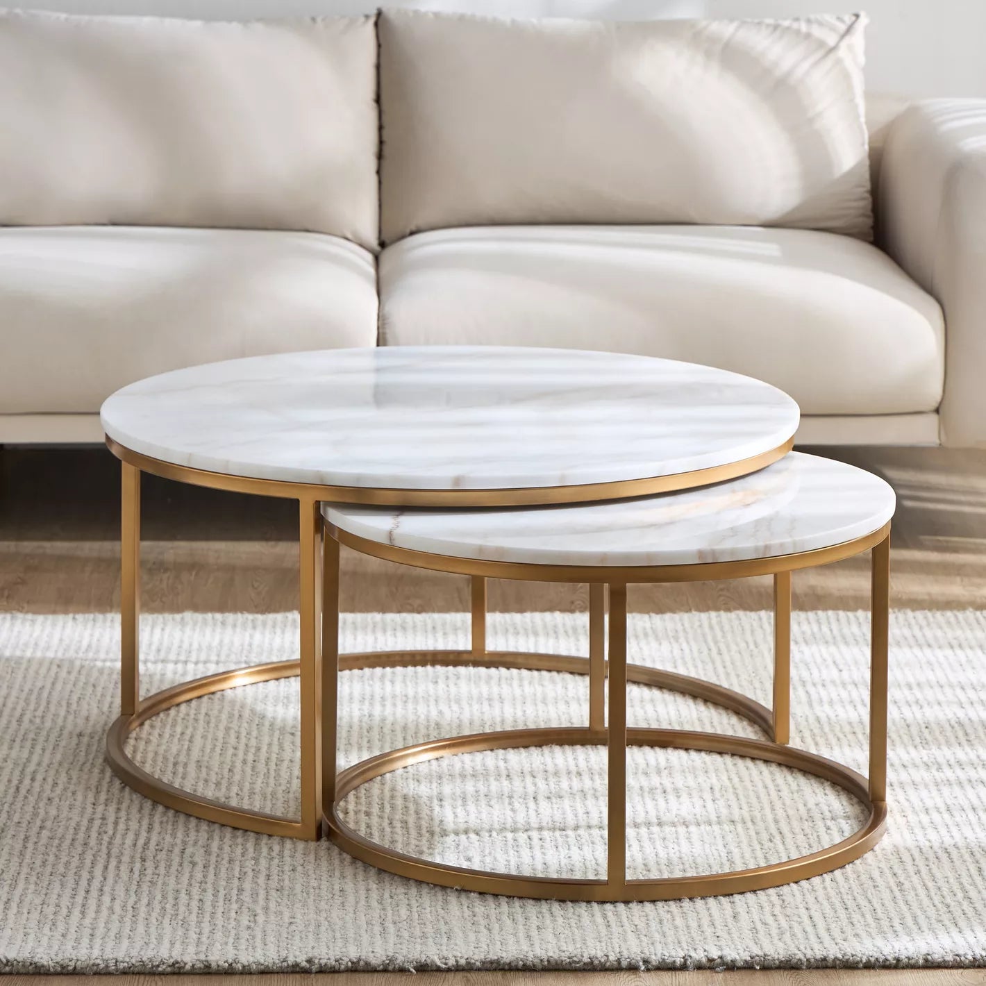 2-Piece Marble Top Coffee Table Set - White/Gold