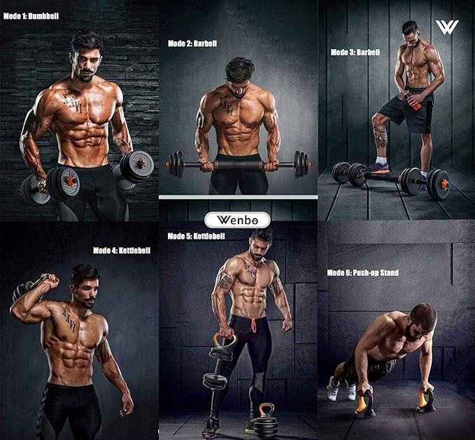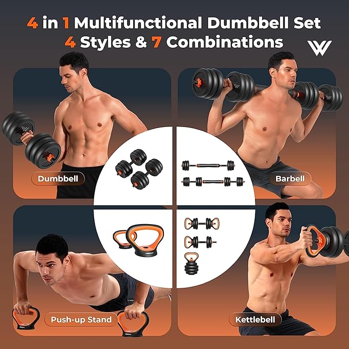 4 in 1 Adjustable Dumbbell Set - Dumbbell & Barbell Set & Kettlebell & Push-up Bracket, Multi-Mode Set, 25KG