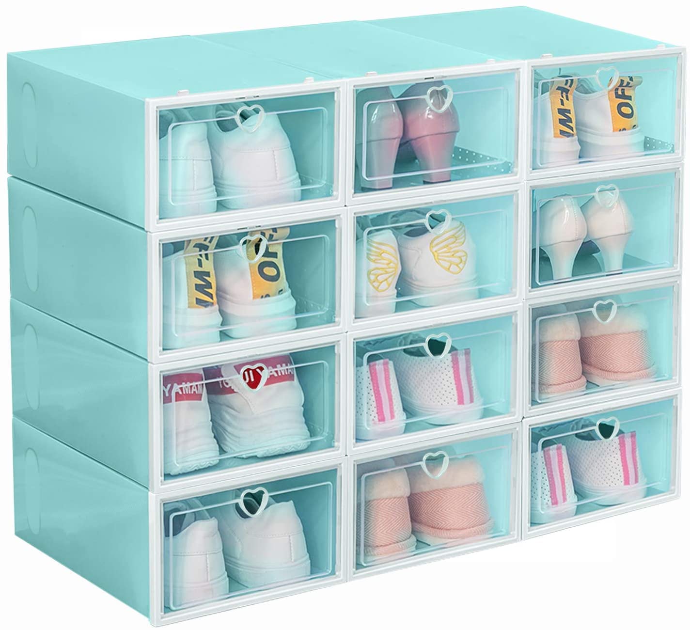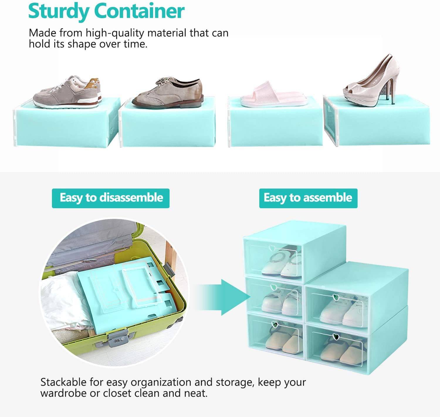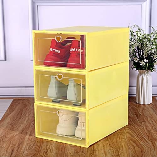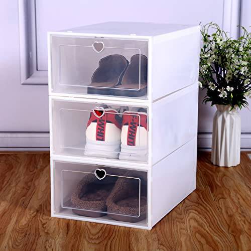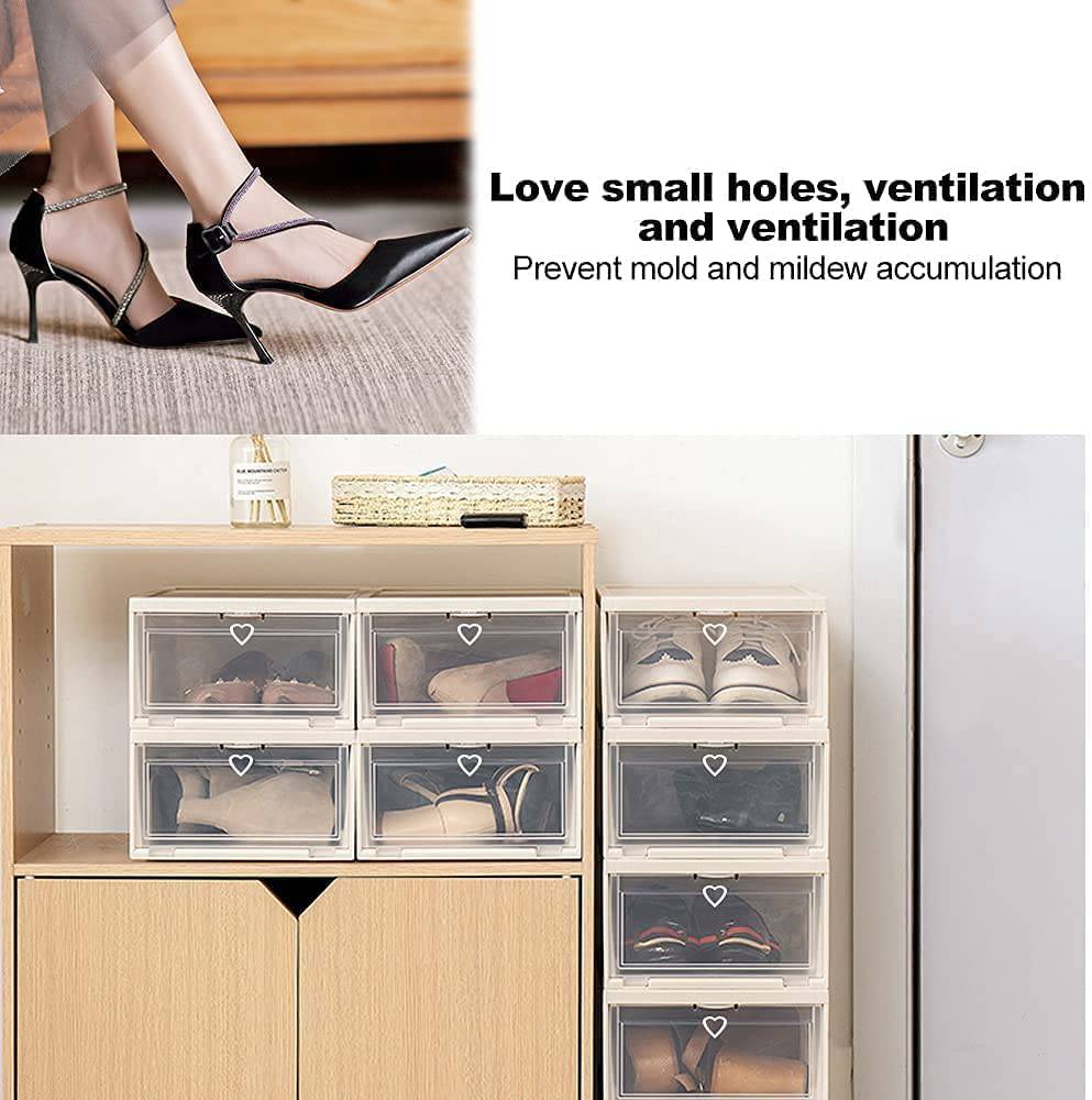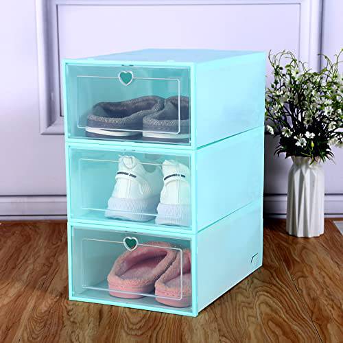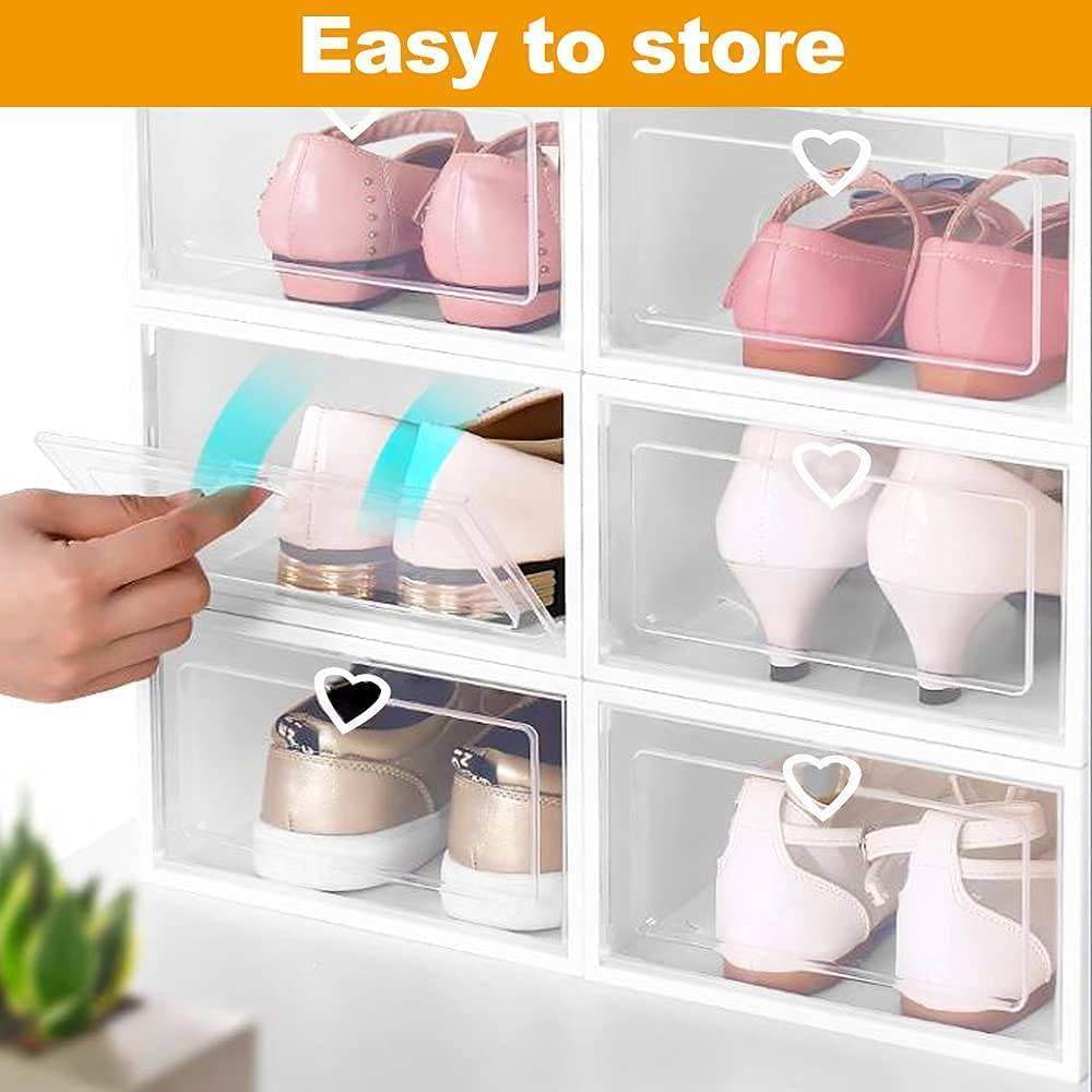 COOLBABY 6 PCS Stackable Shoe Box, Drawer Push Shoe Box Dustproof Transparent Boxes Plastic - COOLBABY