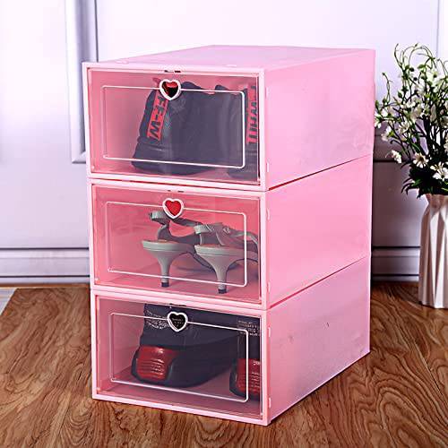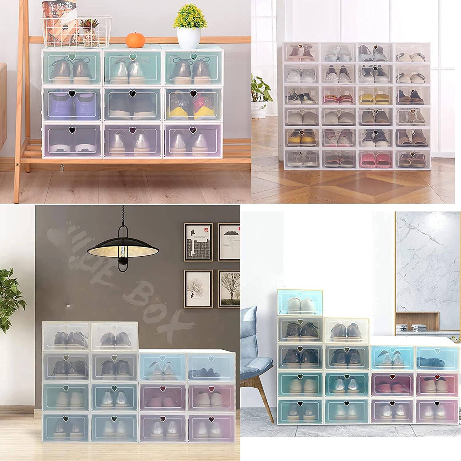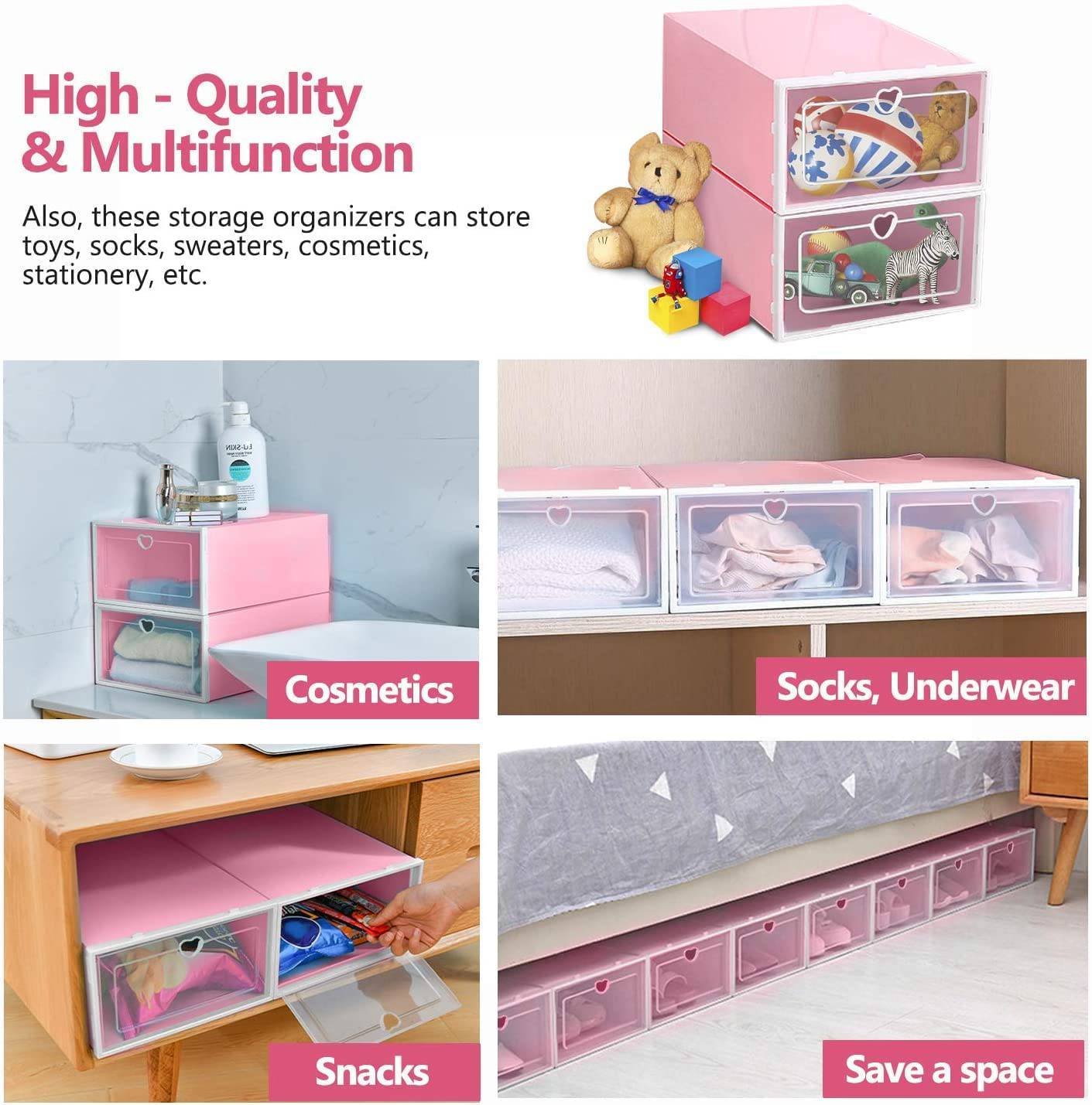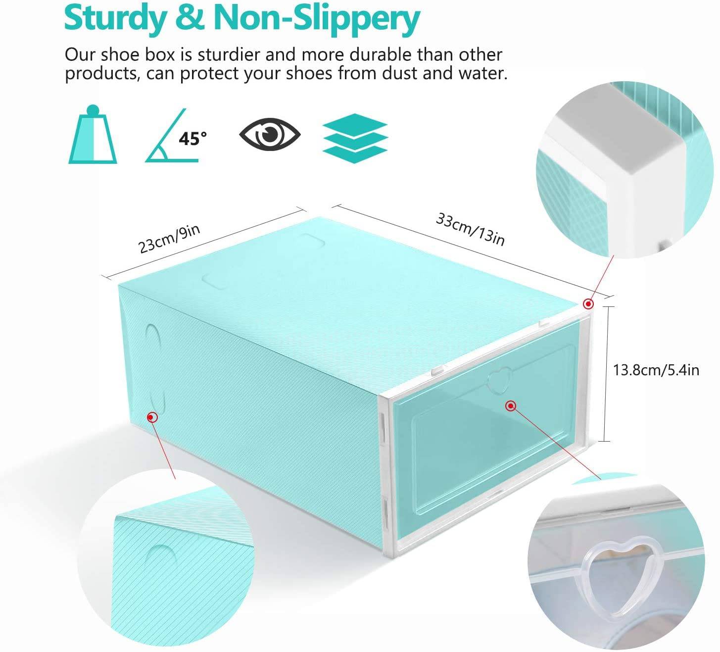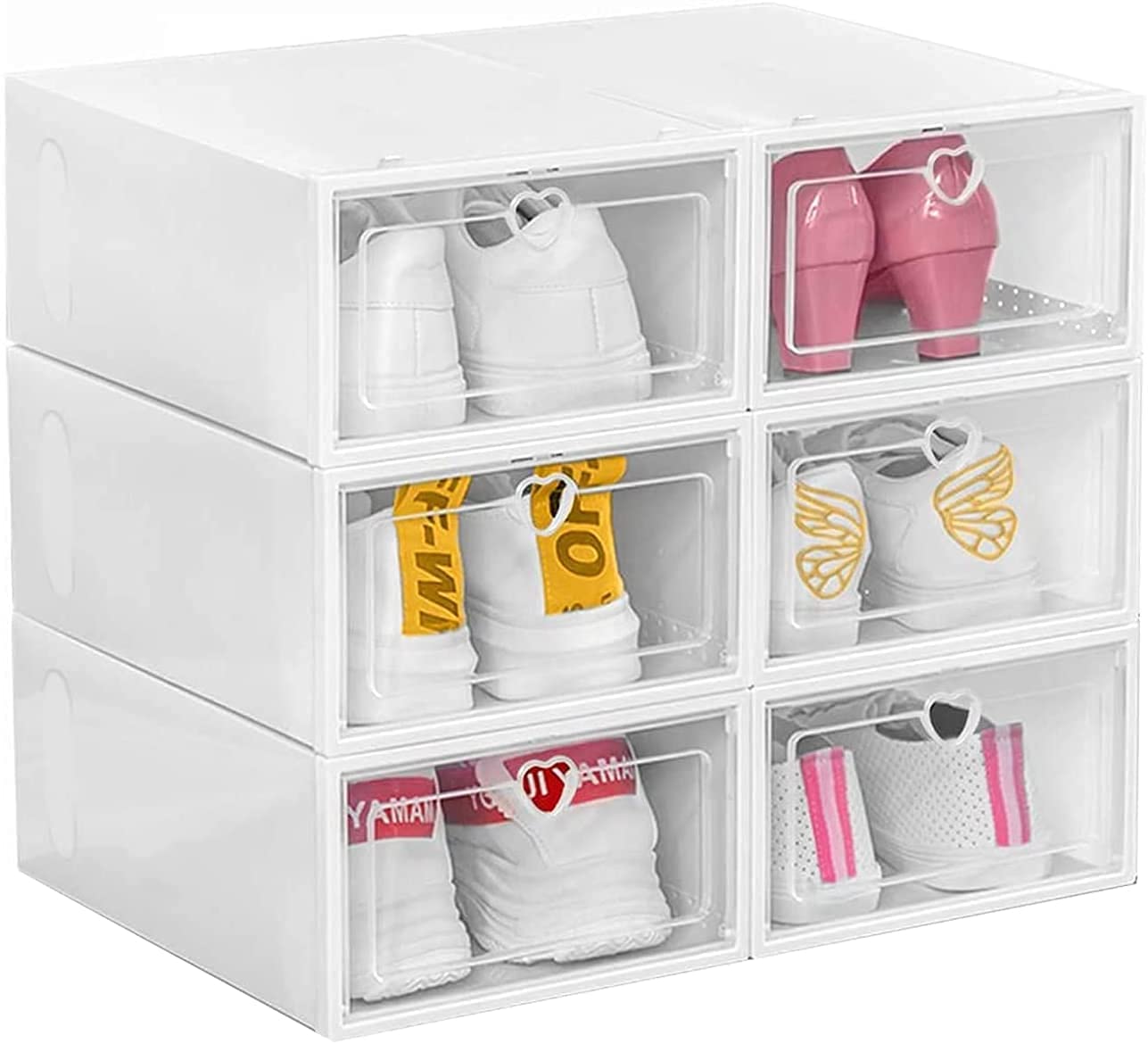 COOLBABY 6 PCS Stackable Shoe Box, Drawer Push Shoe Box Dustproof Transparent Boxes Plastic