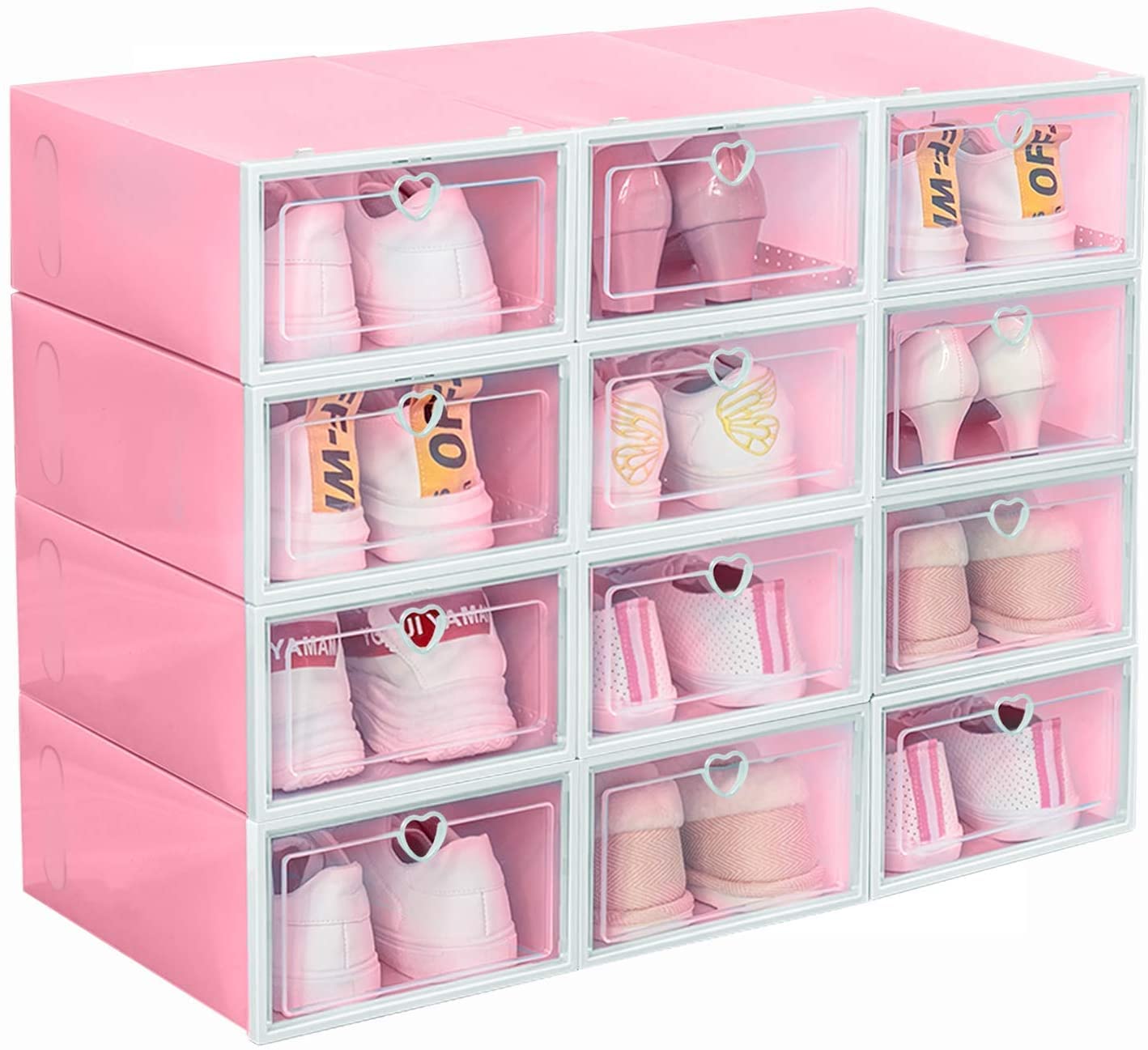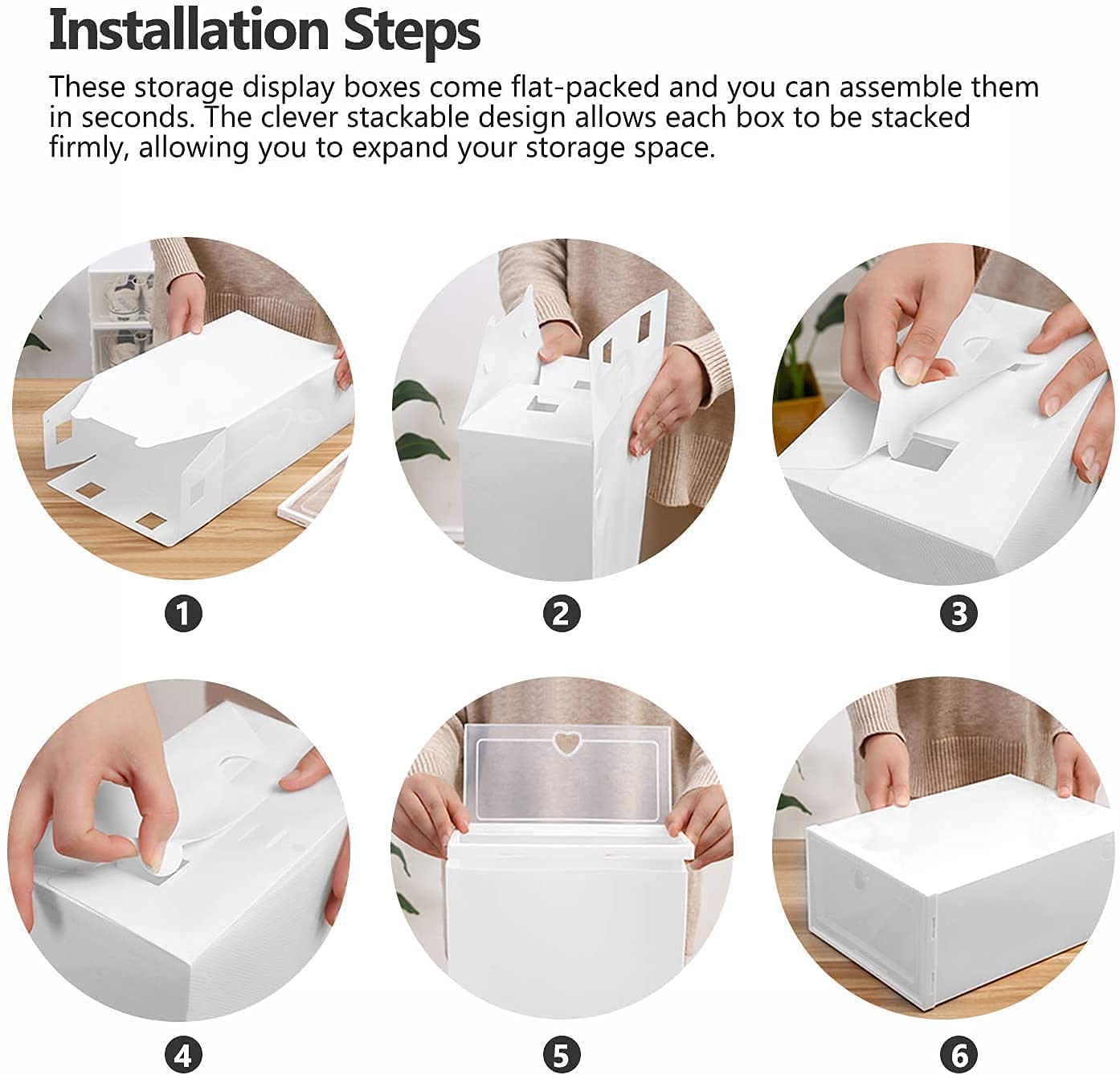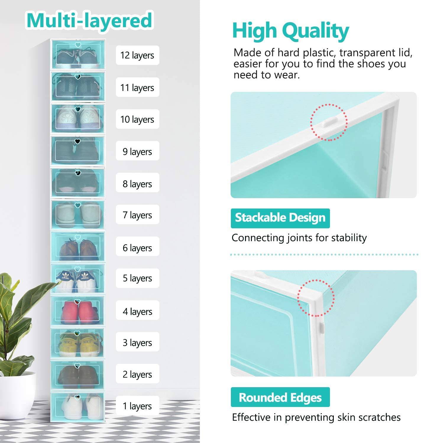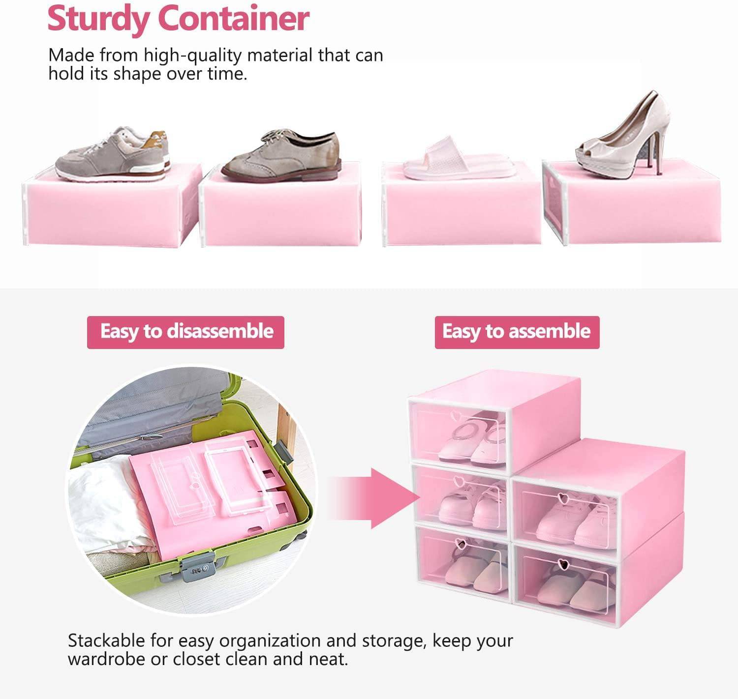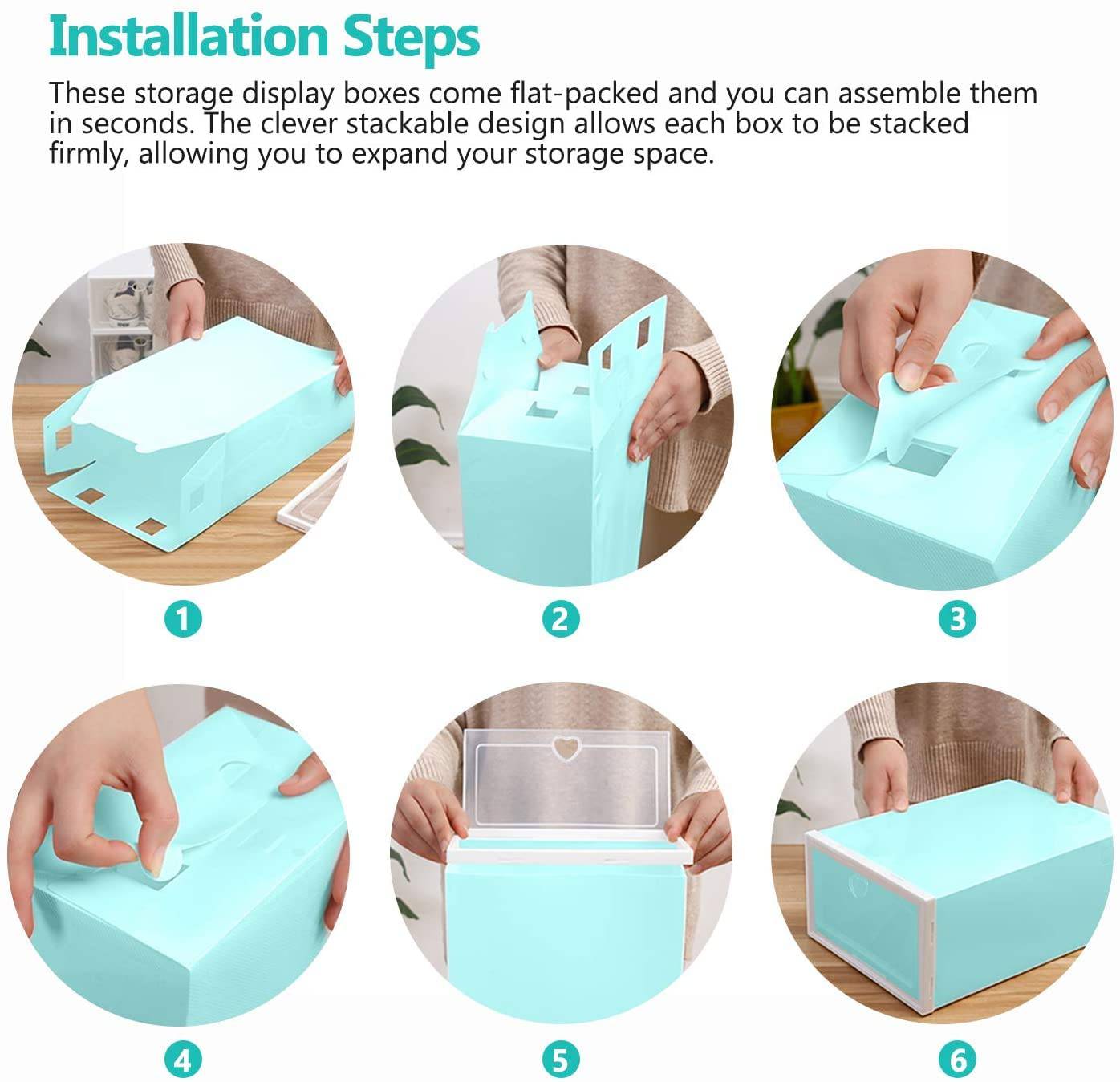 COOLBABY 6 PCS Stackable Shoe Box, Drawer Push Shoe Box Dustproof Transparent Boxes Plastic