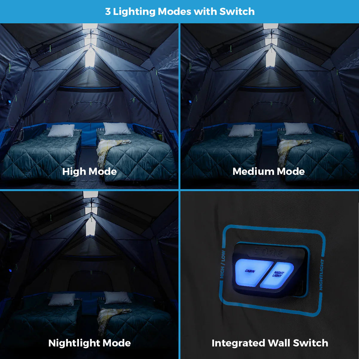COOLBABY 9-Person Instant Cabin Tent with Built-in LED Lighting, Quick Setup & Weather Protection