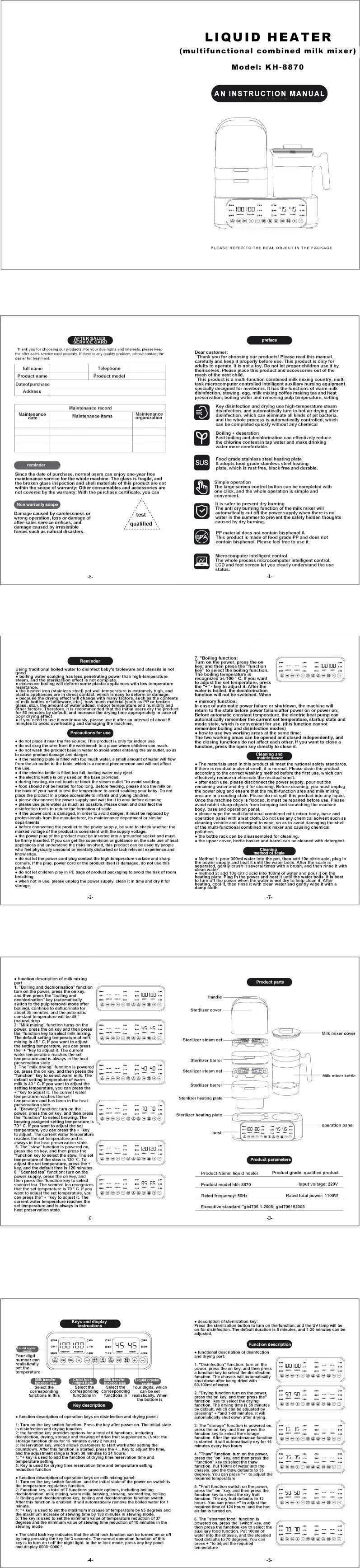 Multi-functional Sterilizer: Combines disinfection, drying, milk mixing, and more in one machine.