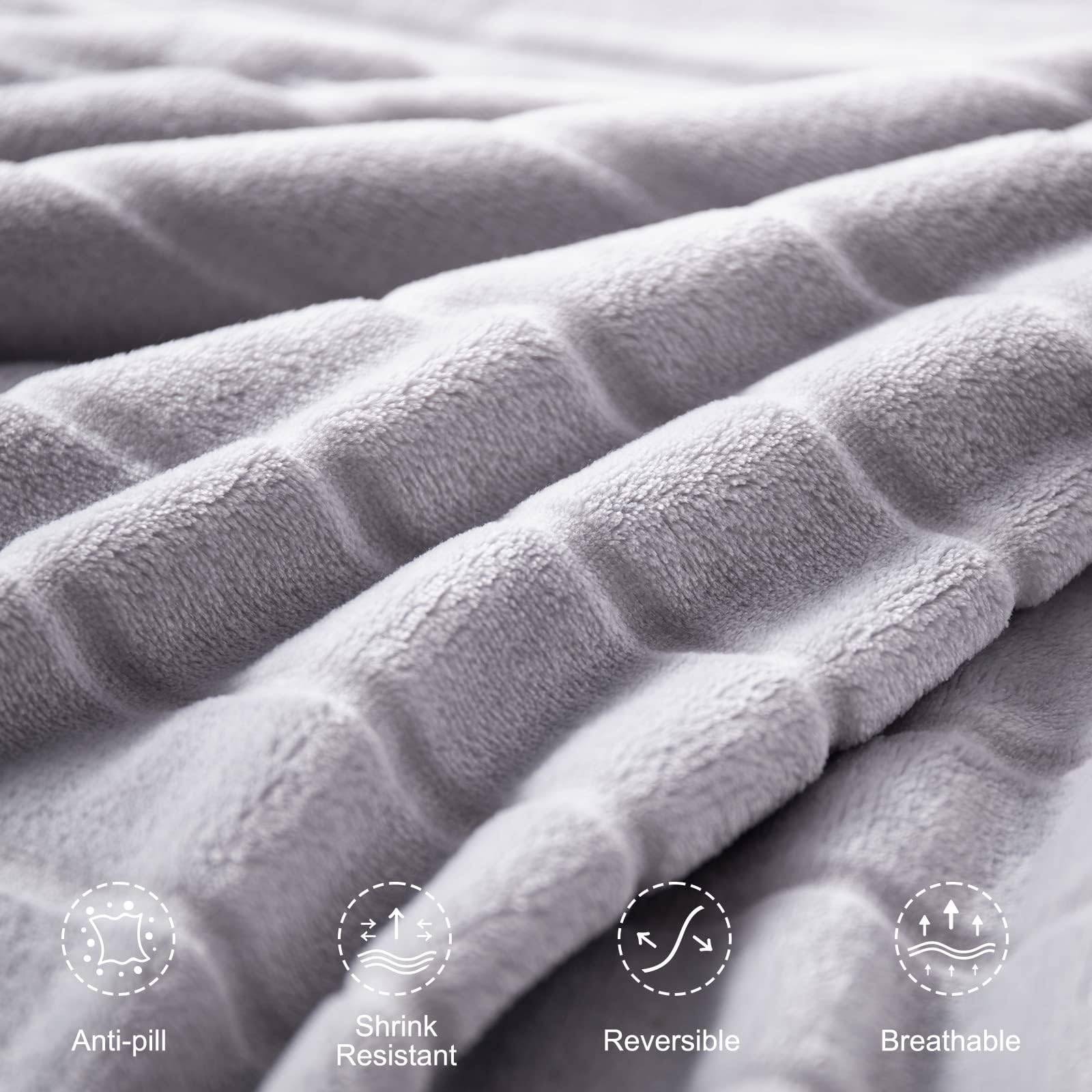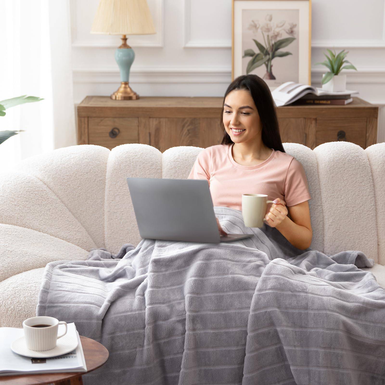 COOLBABY Plush Throw Blanket Super Soft Fuzzy Warm Blanket | 330 GSM Lightweight Fluffy Cozy Luxury Decorative Stripe Blanket for Bed Couch - 50"x 60", Smoke Grey - COOL BABY