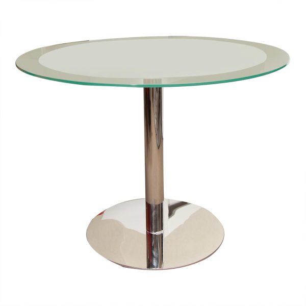COOLBABY Premium Round Meeting Table BC080 – Grey Tempered Glass with Stainless Steel Base