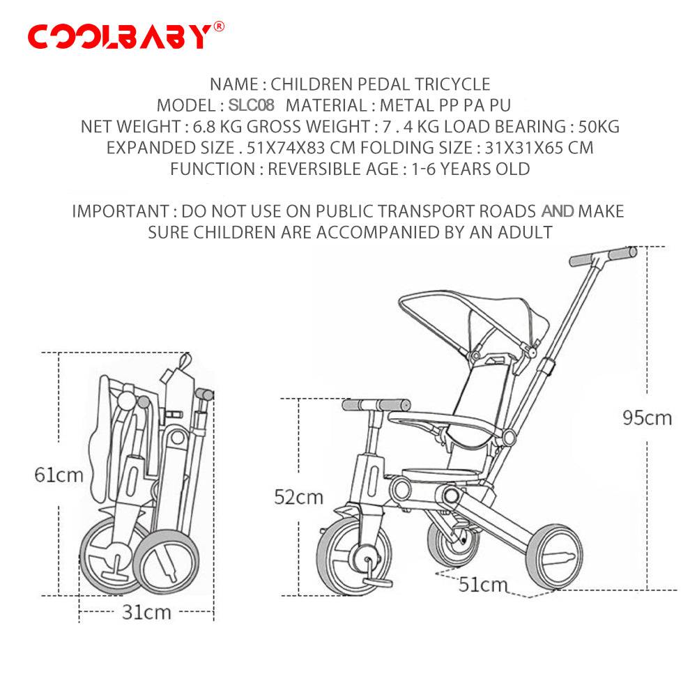 COOLBABY SLC08 7 IN 1 Foldable Kids Trike Toddler Tricycle 3 Wheel Kid Tricycle Baby Pushchair Stroller Tricycles Baby Trike For 1-6 Years Old