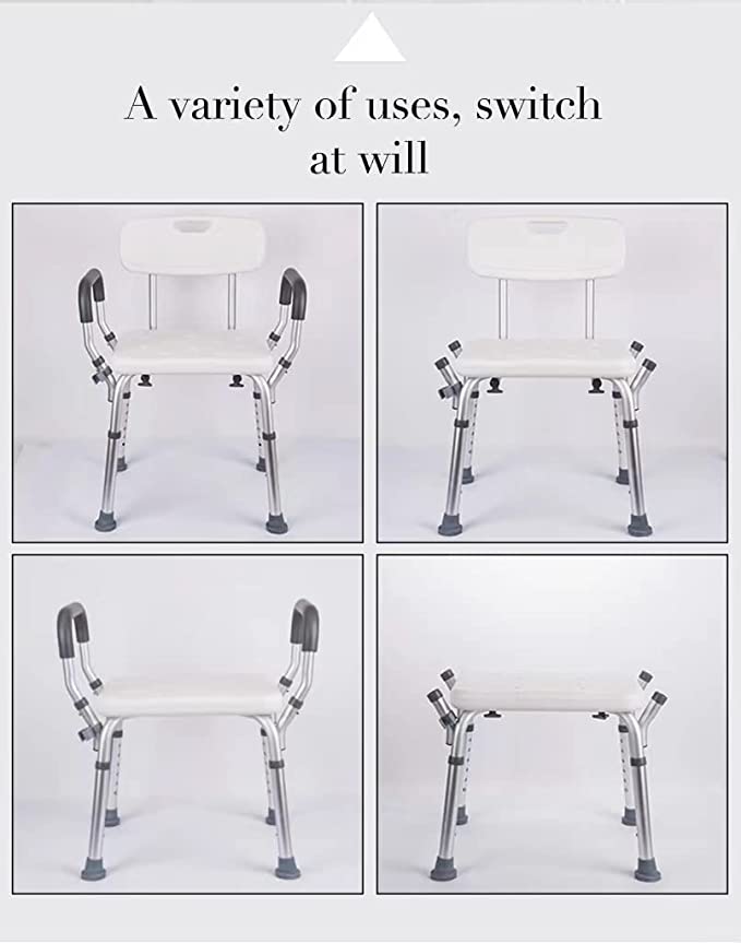 【High Quality Material】: Removable bathroom stool with drainage holes to prevent water accumulation. Made of high-quality aluminum alloy material, environmentally friendly PE backrest and seat, waterproof, anti-corrosion, no rust.【DURABILITY】: Buy a durable bariatric shower chair. The foldable bathroom chair for elderly is made up of an Impact-resistant composite seat. The medical bathroom chair has a lightweight and folding design. The low cost of this hospital shower chair leaves people in the sense of awe. Get bath stools for seniors to help them stay safe. Take this adjustable shower chair confidently. This shower seats for elderly is a folding shower chair made for use in medical shower chair.