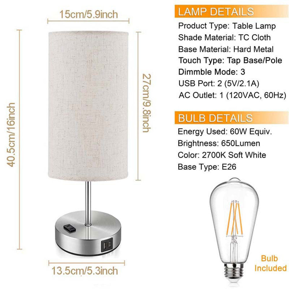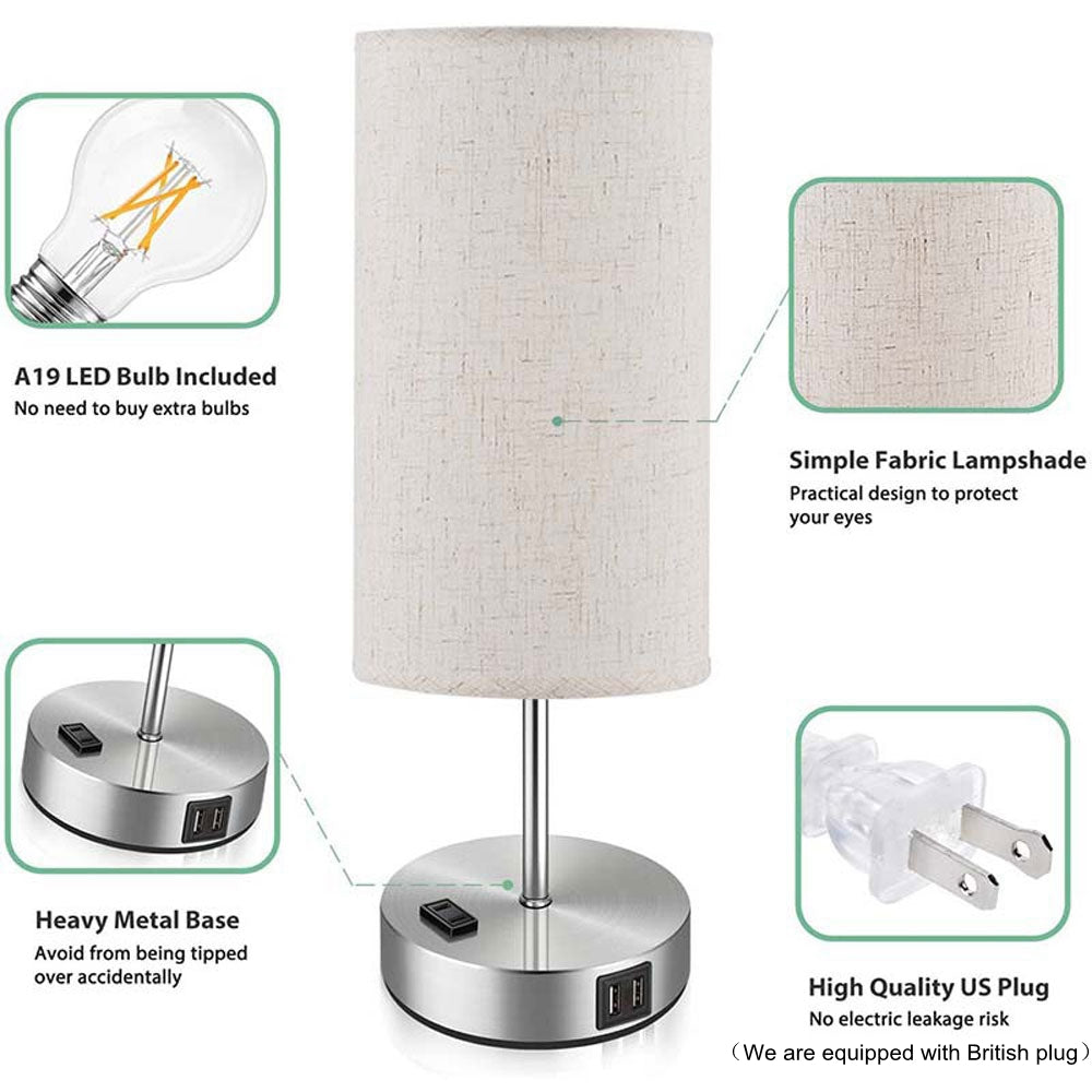 - 【Built-in two USB ports】Each bedside lamp has two USB fast charging plugs and an AC socket, which can charge multiple smart devices at the same time without finding additional sockets everywhere, keeping your side table tidy.