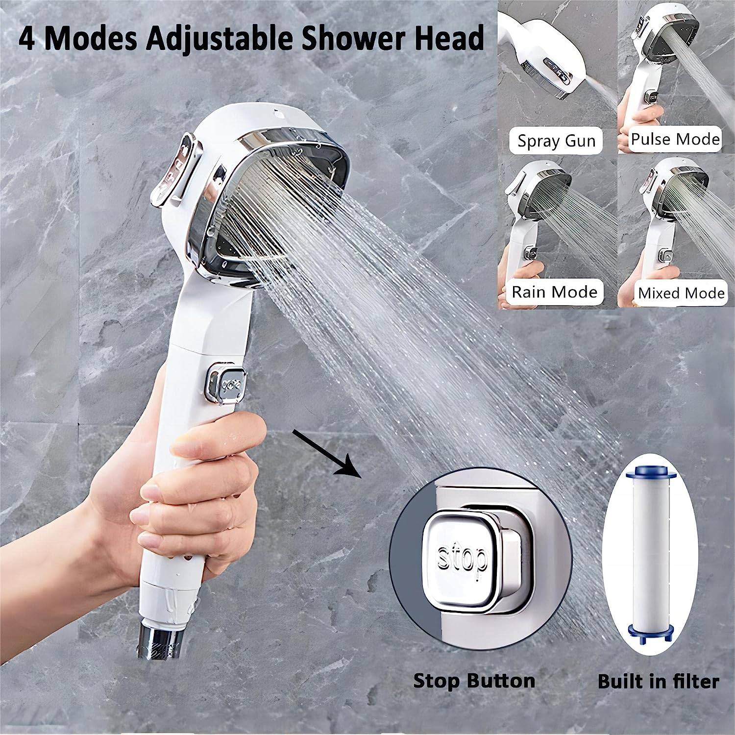 COOLBABY WSTT703 4 Modes High Pressure Shower Head With Switch On Off Button Sprayer Water Saving Adjustable Shower Nozzle Filter For Bathroom - COOL BABY