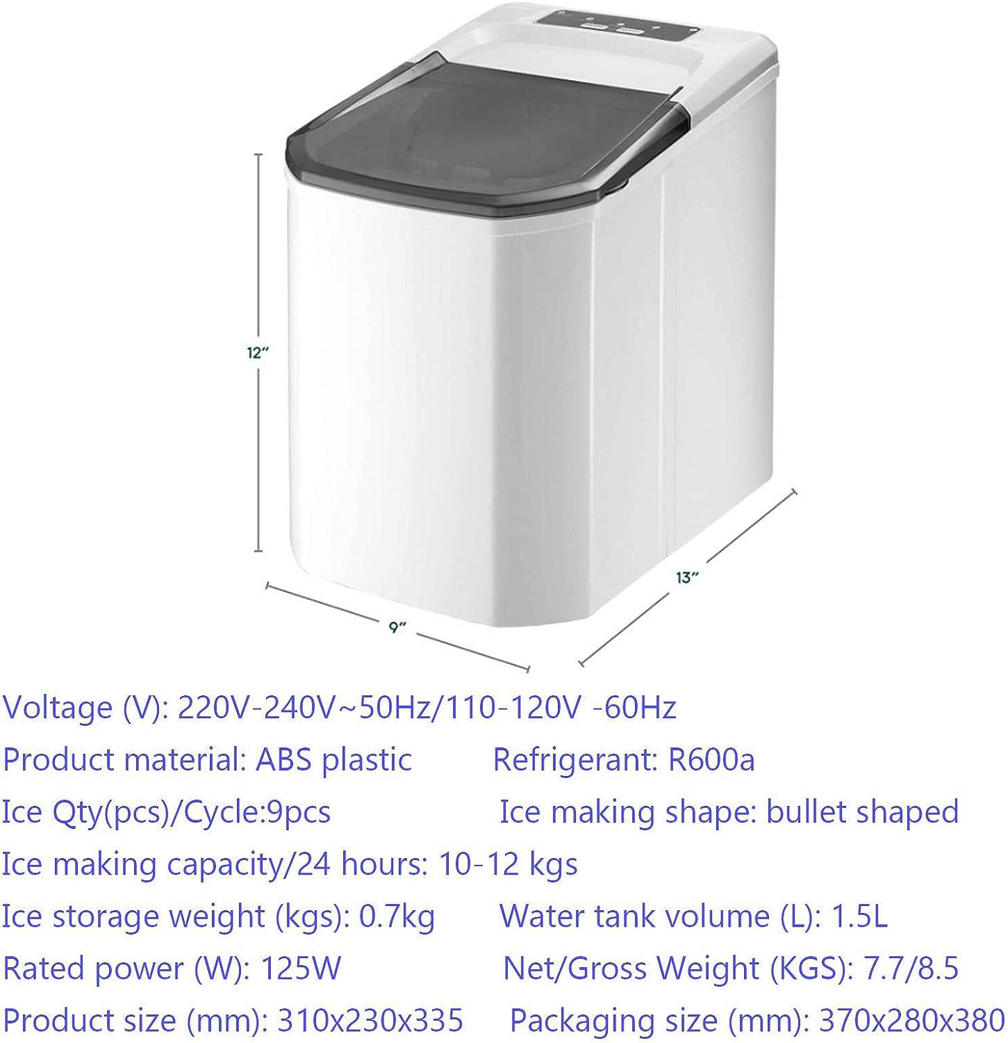 - Water tank capacity: 1.5L, capable of producing 120 ice cubes.