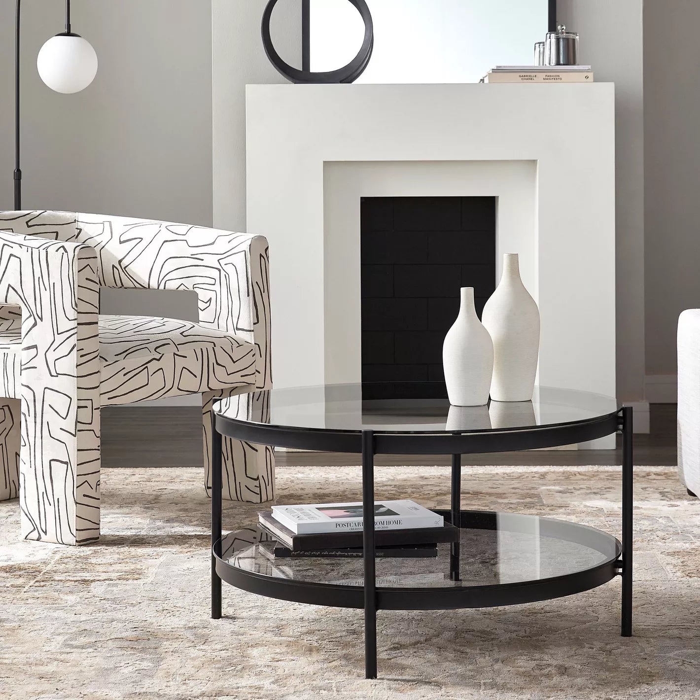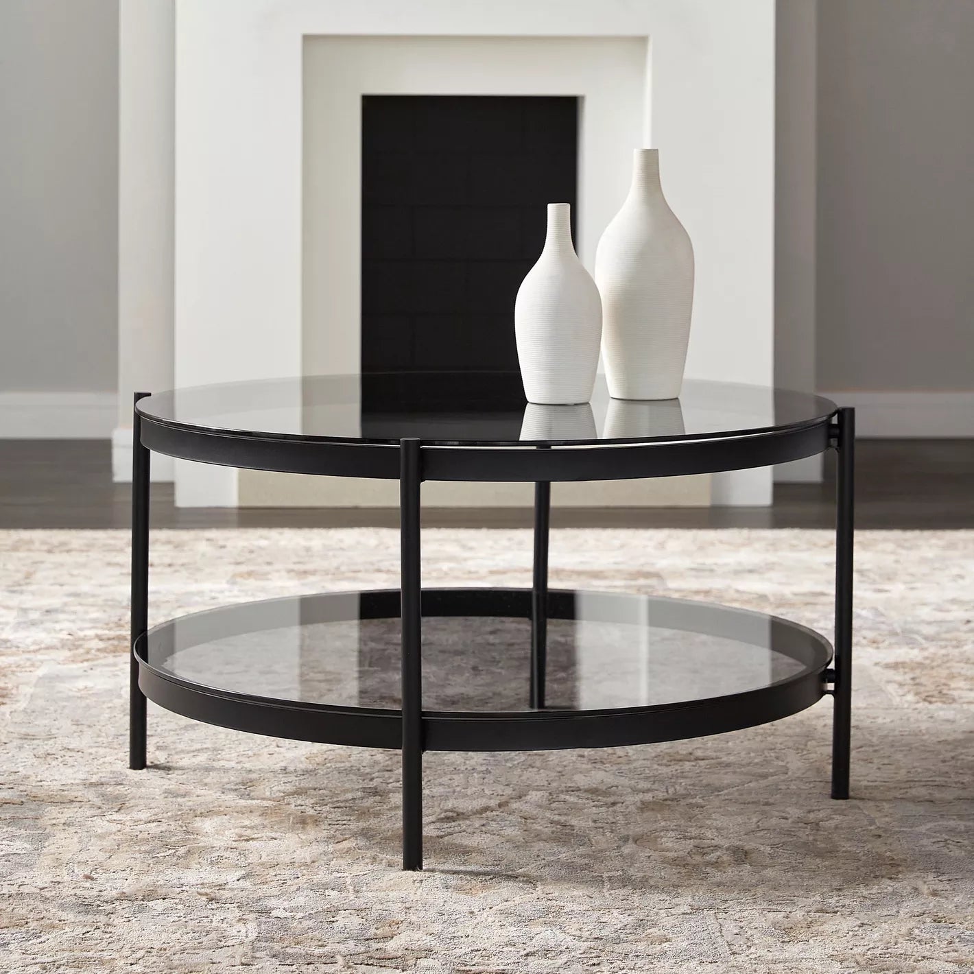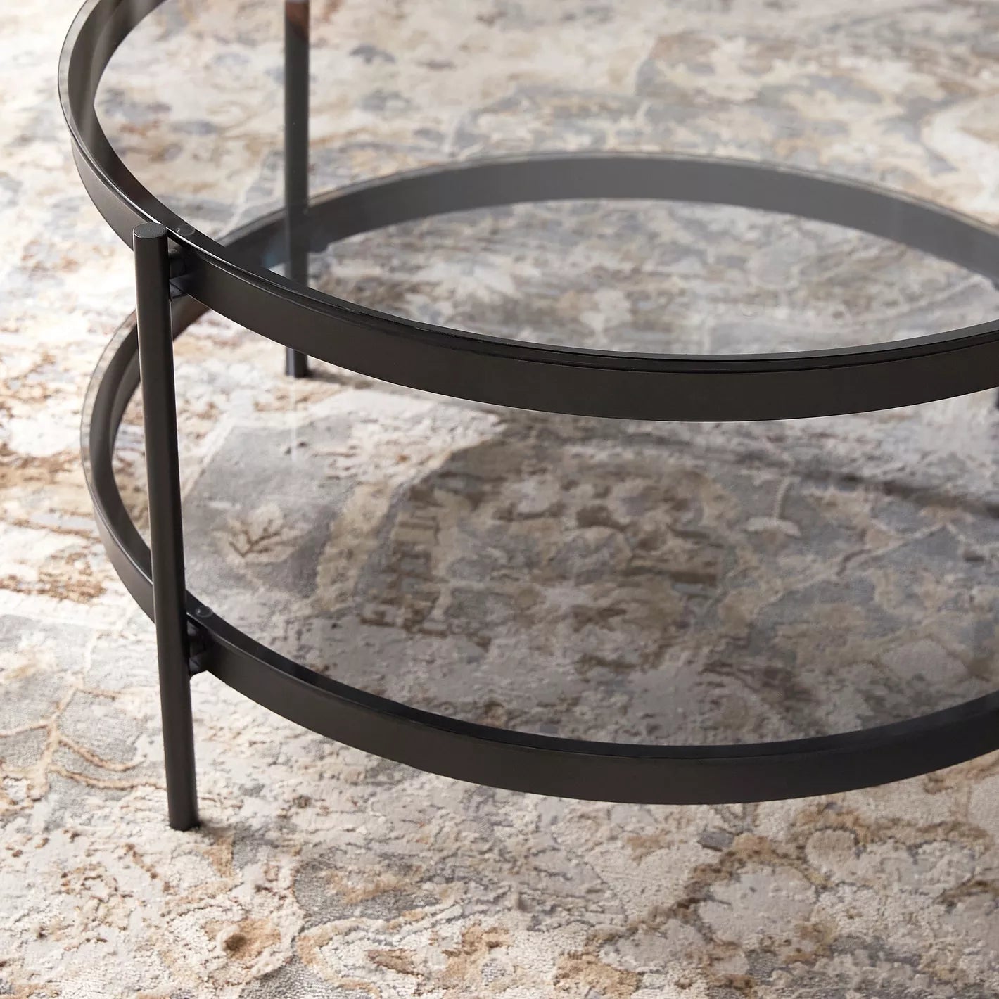 Elegant Glass Top Coffee Table With Metal Legs - Round Design - COOLBABY