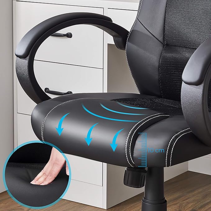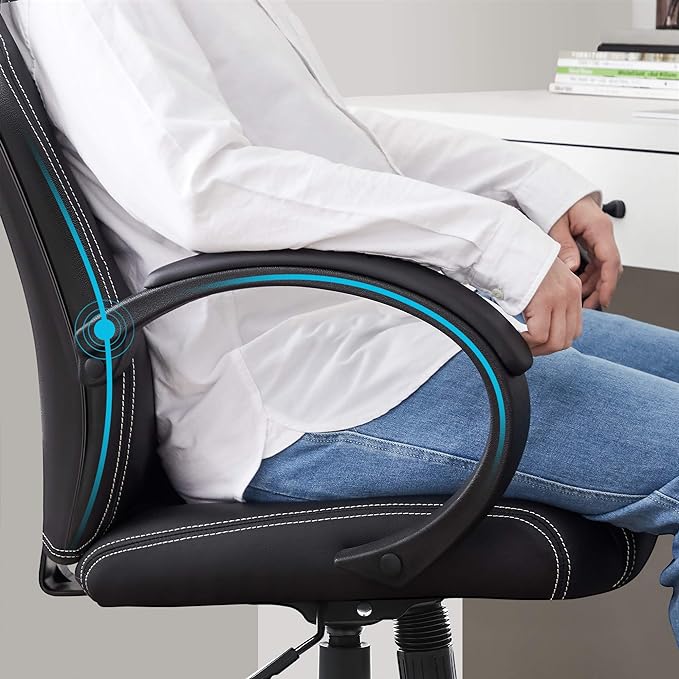 Ergonomic Faux Leather Office/Gaming Chair, Computer 360° Swivel Chair, With Tilting Mechanism And Height Adjustable - Black - COOLBABY