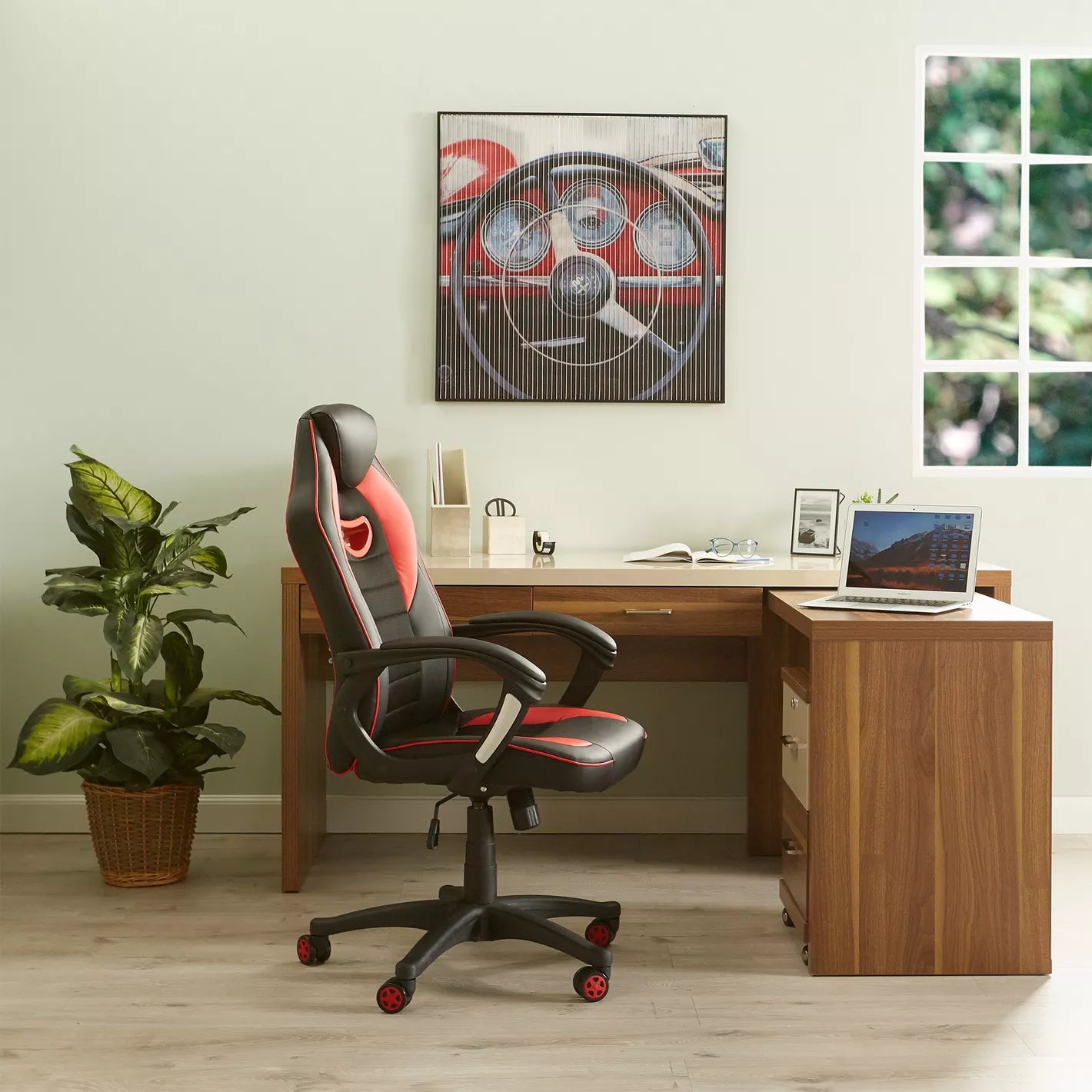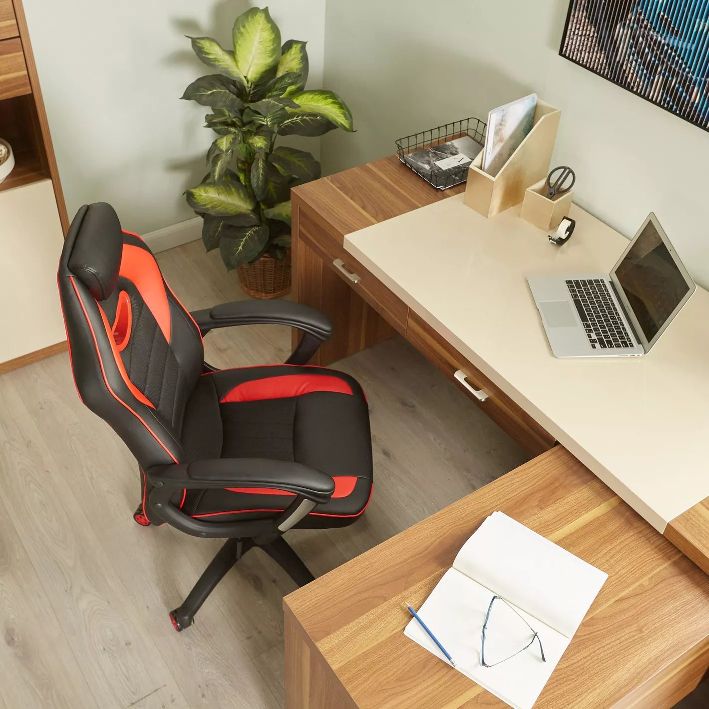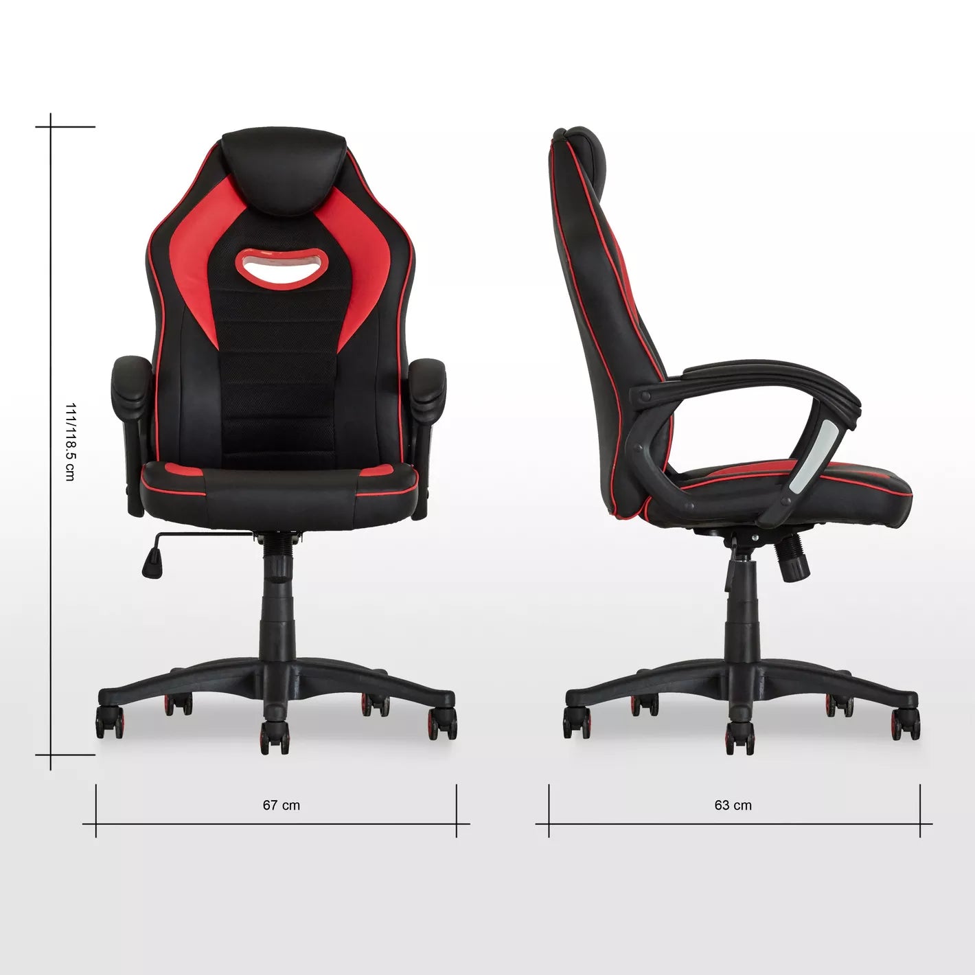 Gaming Chair, Semi-Ergonomic Office/Gaming Chair With Curved Arms And Easy Mobility - Red/Black