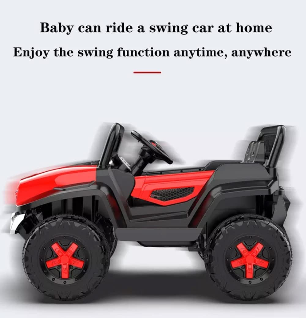 GettBoles 158 Battery Operated Ride on Jeep for Kids with Music, Lights and Swing- Electric Remote Control Ride on Jeep for Children to Drive of Age 1 to 6 Years, Metallic Red