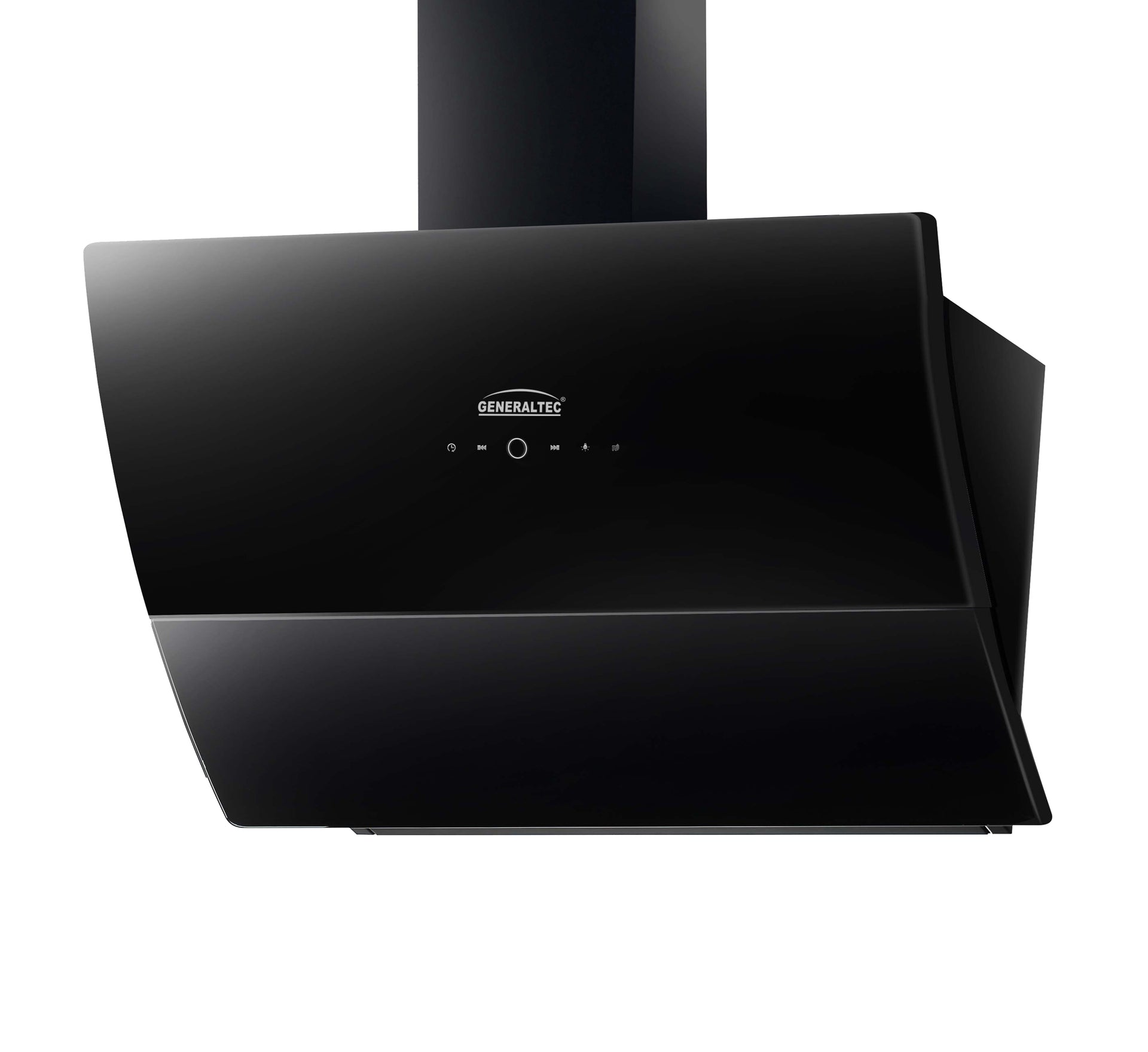 - Design: Wide slanted hood with a stylish black color and tempered glass finish