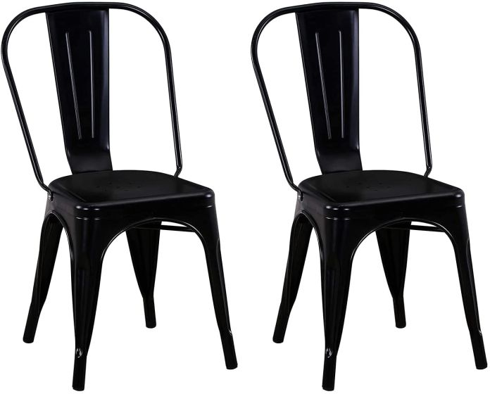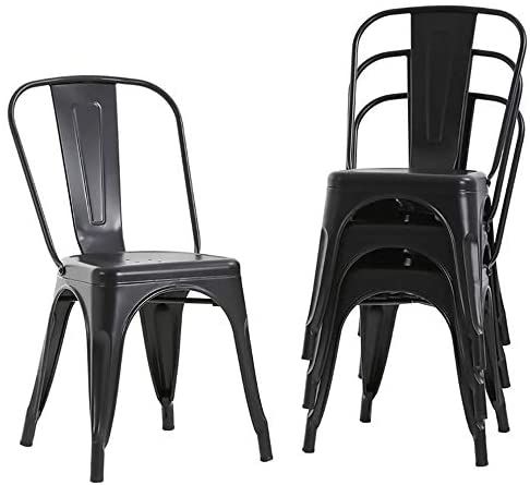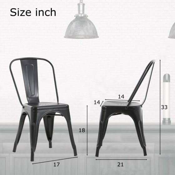 Metal Stackable Dining Chairs for Indoor, Outdoor & Kitchen Chair - Black