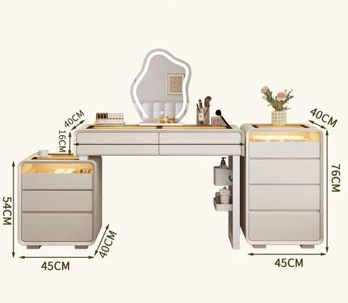 - Ample Storage: Multiple drawers and cabinets for organizing cosmetics, jewelry, and personal items.