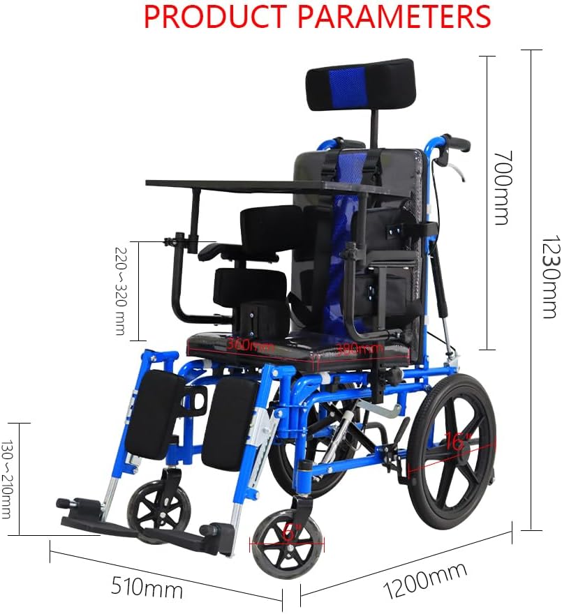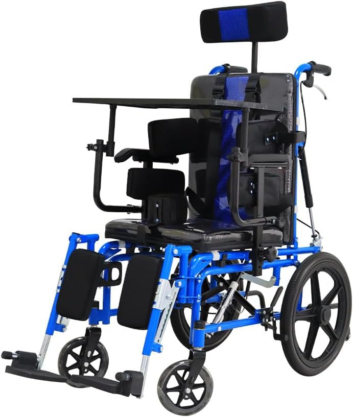 Moficno Foldable Full Recline Child Wheelchair for Cerebral Palsy - High Backrest, Dining Table, Disabled Assistive Equipment Rollator Walker