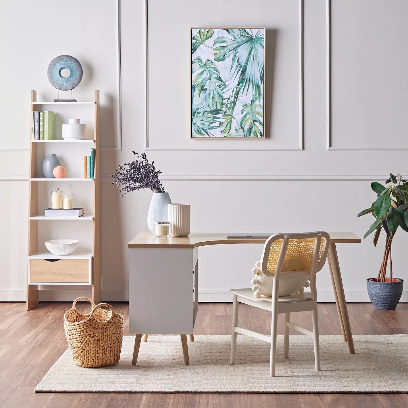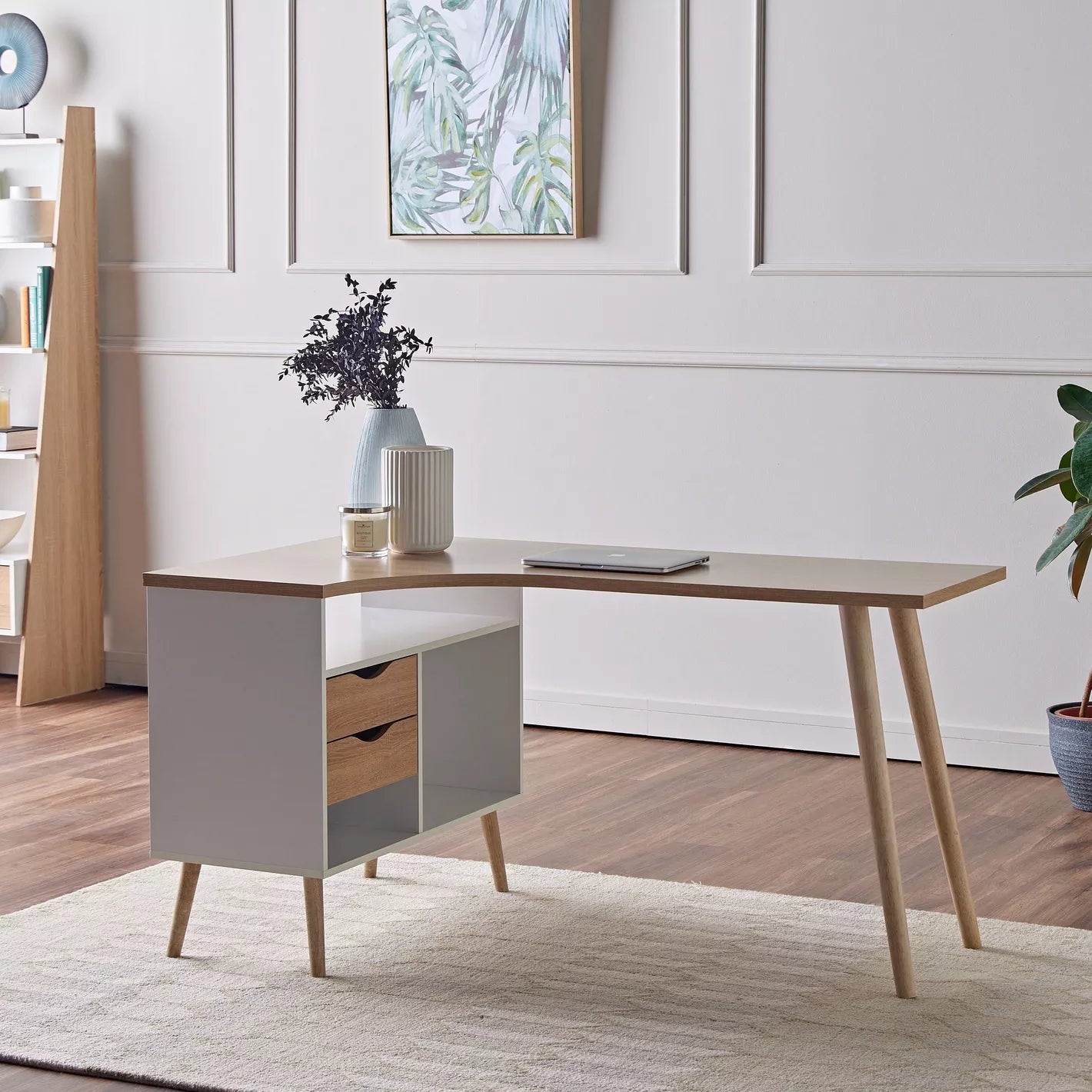 - Refresh your home interiors with this chic corner desk, perfect for modern spaces.