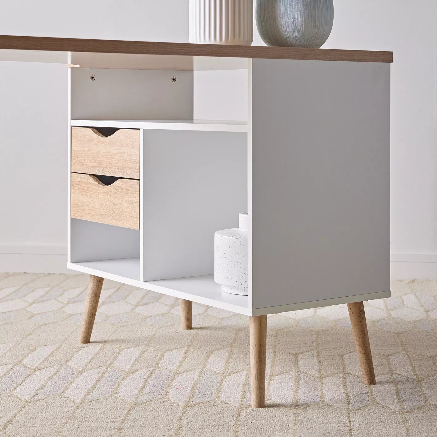 - Includes multiple compartments and 2 drawers for organized storage of office essentials.