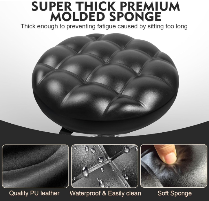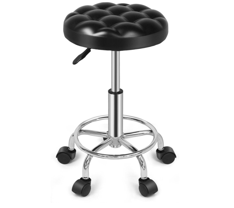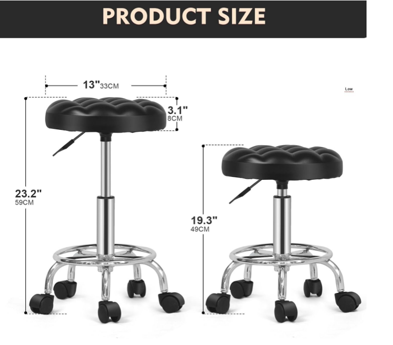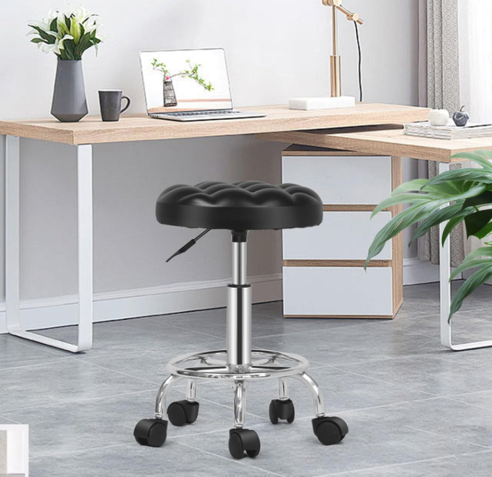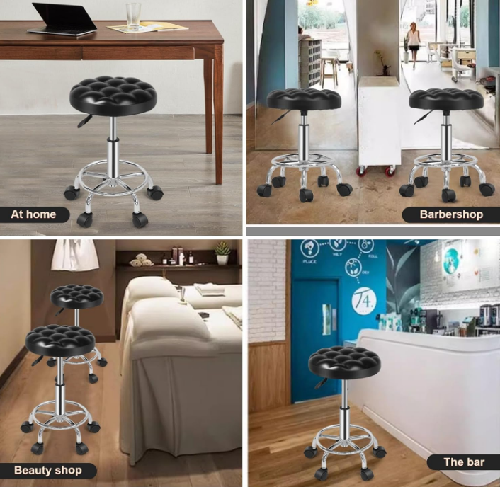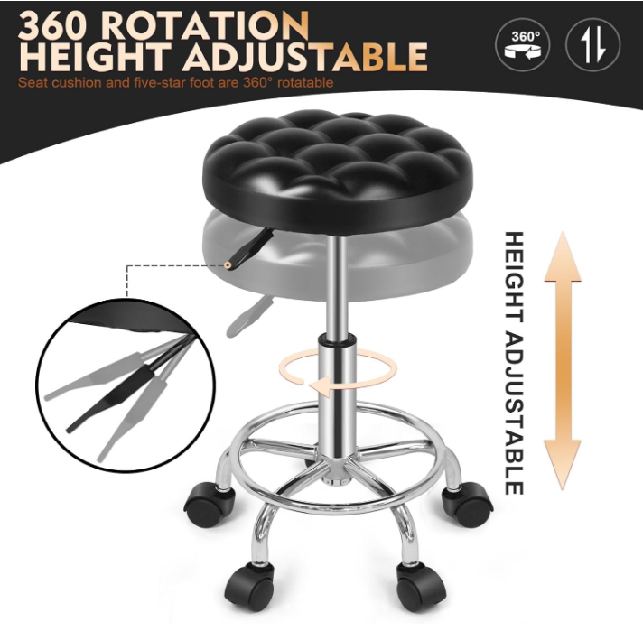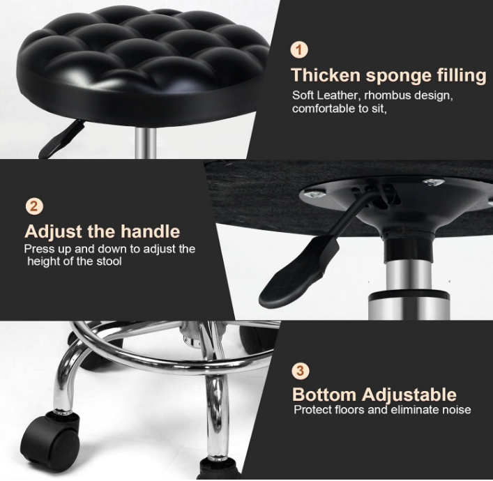 Round Rolling Stool: Vanity Chair with PU Leather, Height Adjustable, 360° Swivel Stool with Wheels