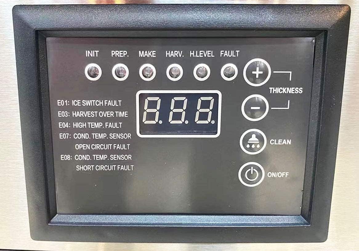 - It has operation panel buttons that will help you control the process of ice making. The panel consist of ON/OFF, CLEAN, (+) and (-) sign for ICE THICKNESS, and ICE PROCESSING INDICATORS