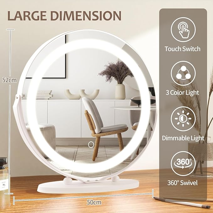 - Illuminated Design: Features LED lights for enhanced visibility and clarity during makeup application or grooming.