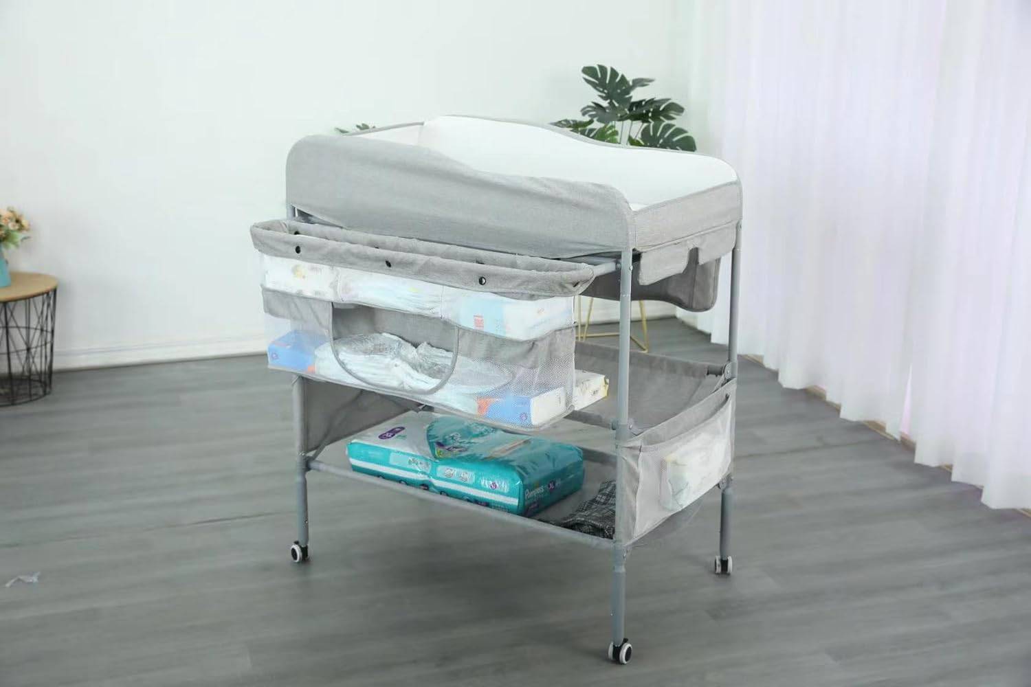 - Upgraded storage accommodates diapers, tissues, clothes, and more.