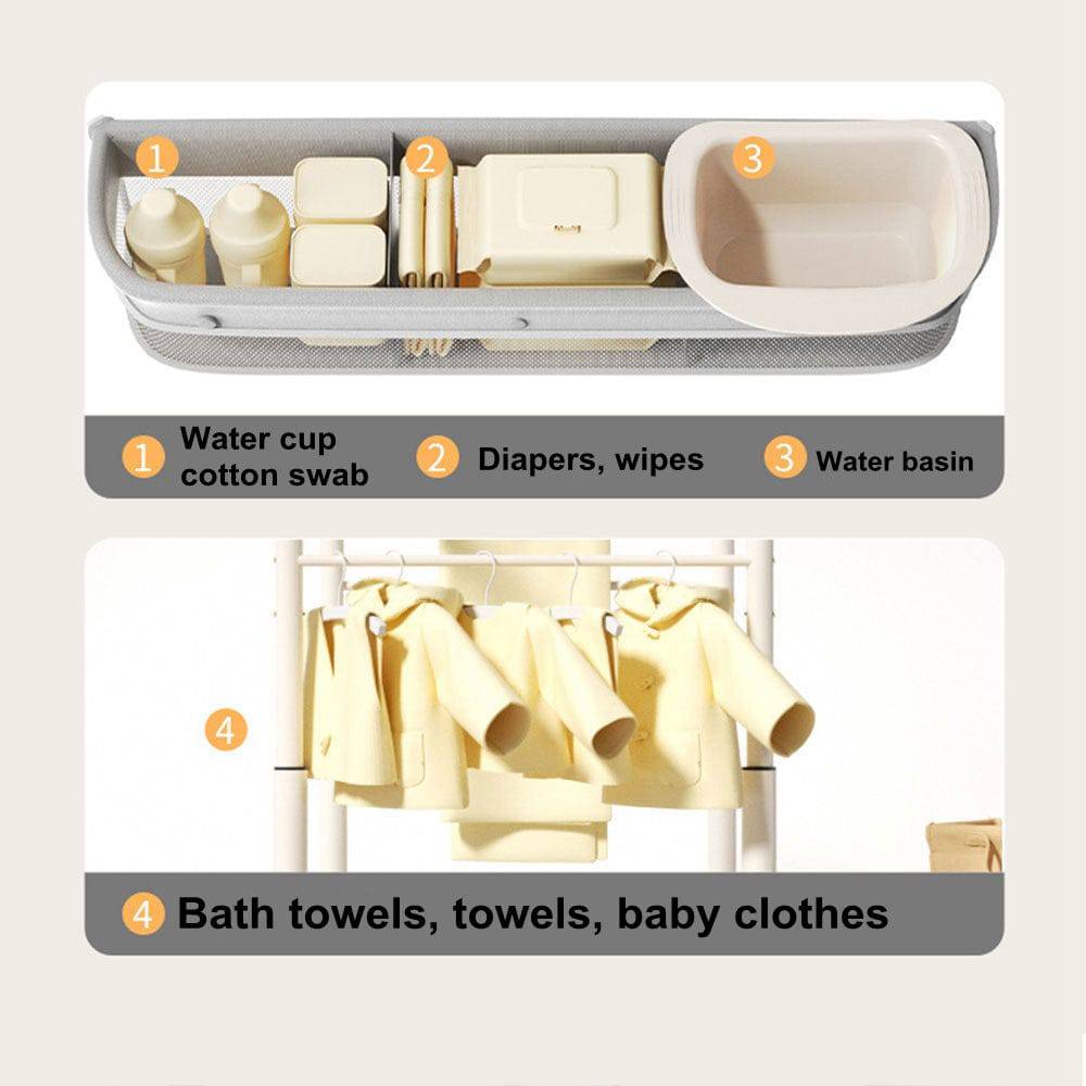 Organized Storage: Features 1 side hanging basket and 1 storage basket for convenient storage of baby essentials like diapers, wipes, lotions, and more.
