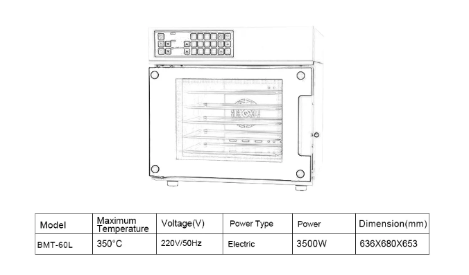 - Large Capacity: 60-liter interior allows for baking multiple items simultaneously, accommodating up to 5 trays.