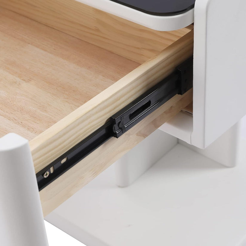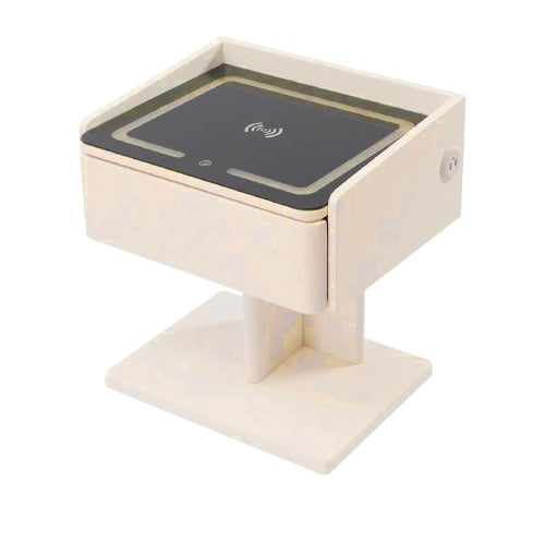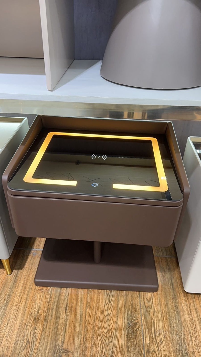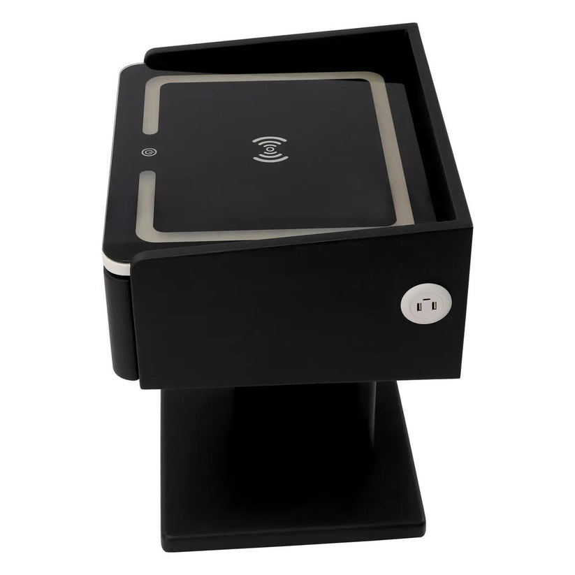 - Nightstand featuring a charging station and dimming LED lights.