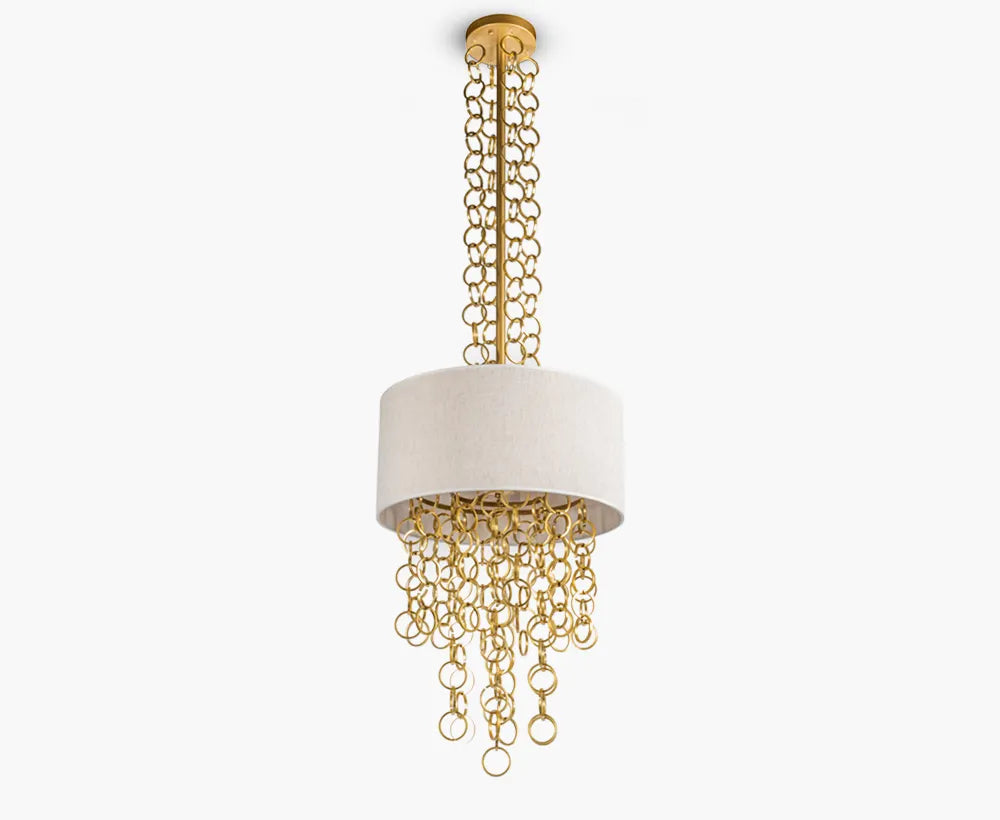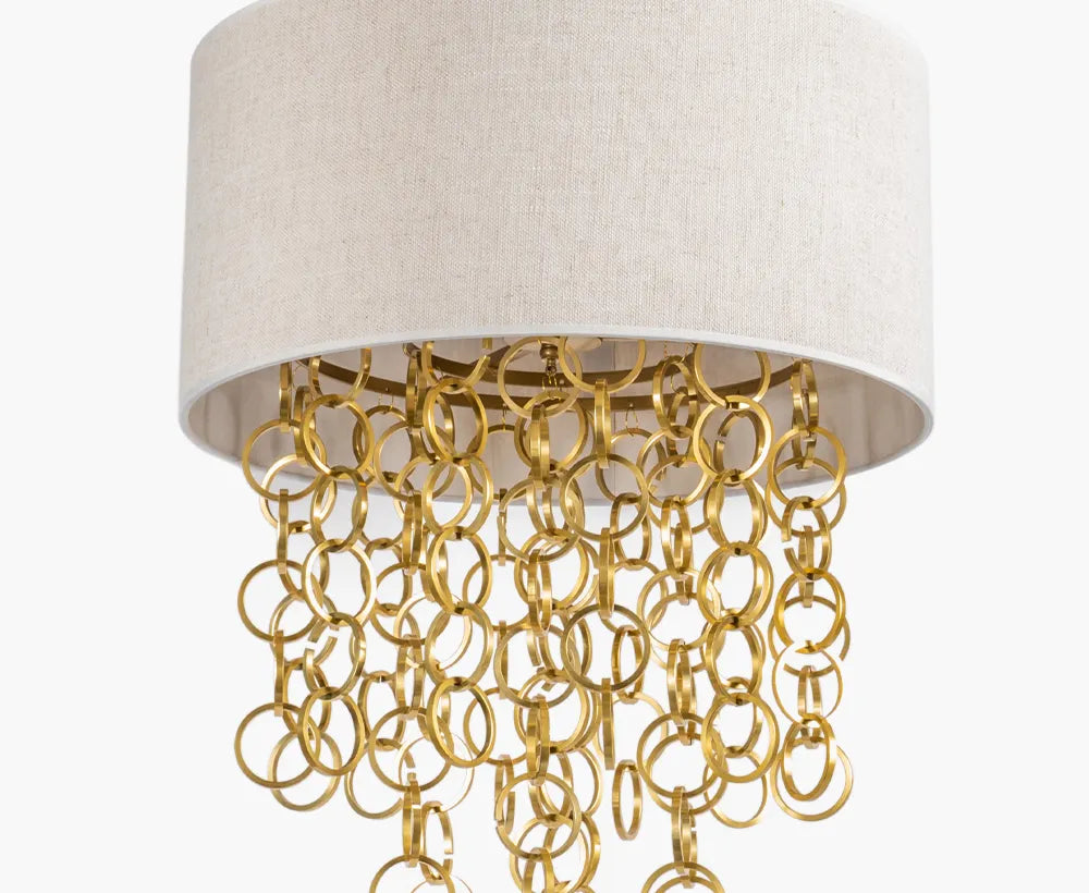 - Material: Features a light beige linen shade complemented by aluminium rings, creating a sophisticated and contemporary look.
