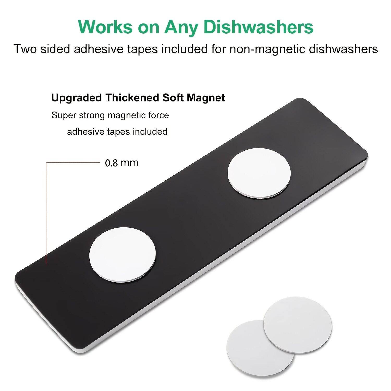 - Includes double-sided tapes for non-magnetic dishwashers.