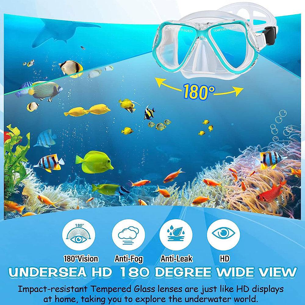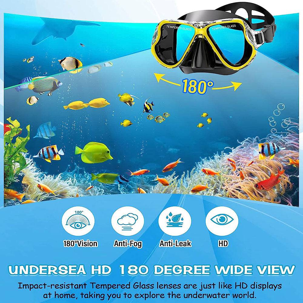 Clear Lenses for Panoramic View: A single-layer tempered glass lens provides ultra-visibility. The unique frame shape extends visibility in all directions. Ideal for snorkeling, swimming, and scuba diving.